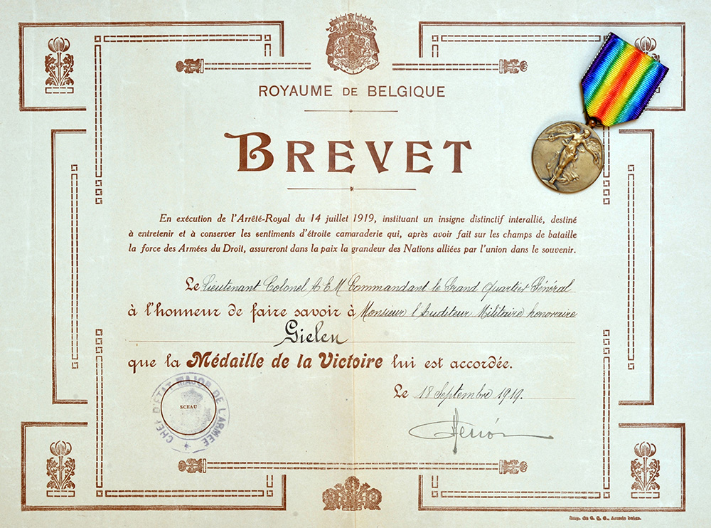 Créée par arrêté royal du 14 juillet 1919, cette médaille est décernée à tous les soldats qui ont servi dans l'armée belge durant le premier conflit mondial, soit entre le 1er août 1914 et le 11 novembre 1918.