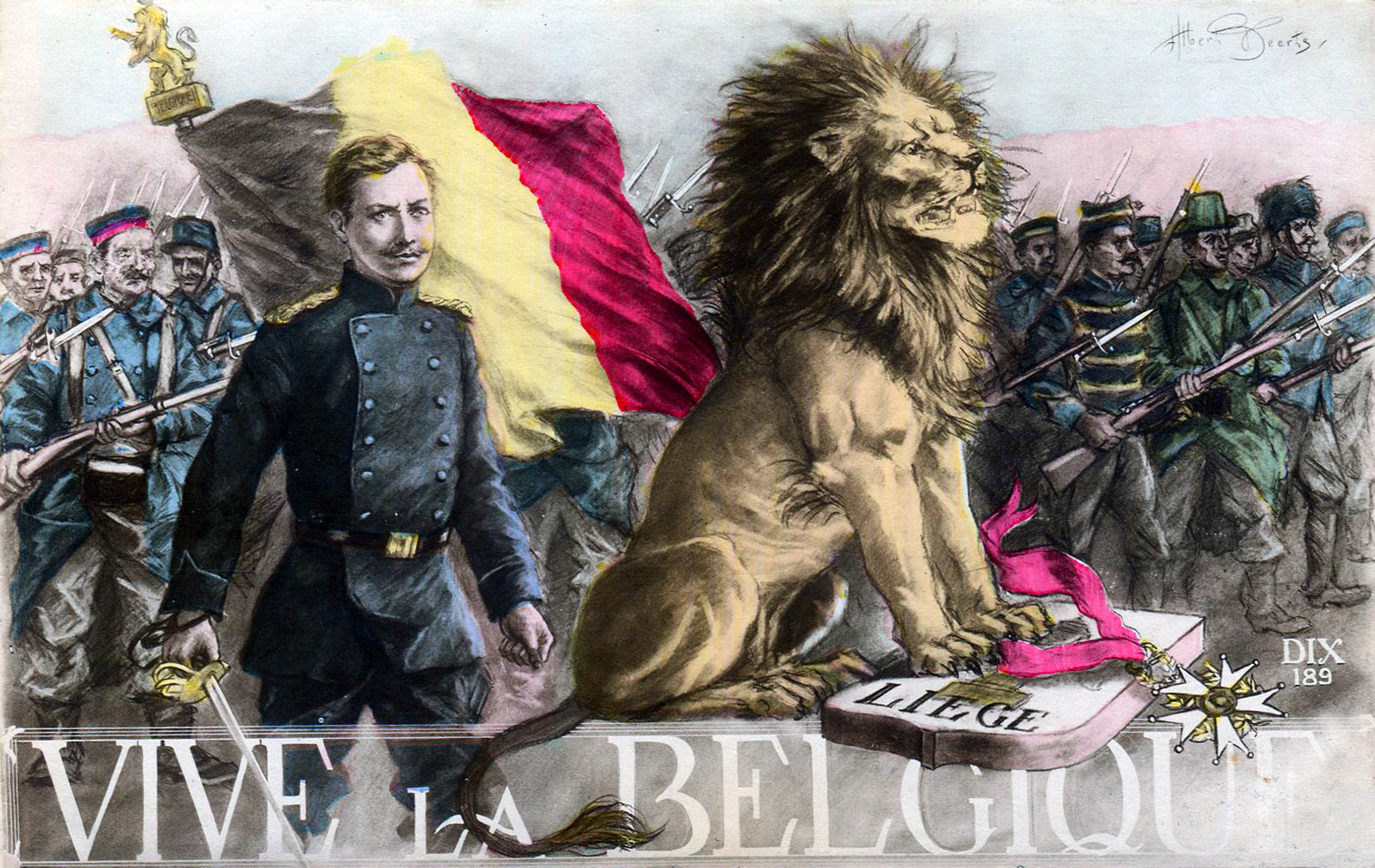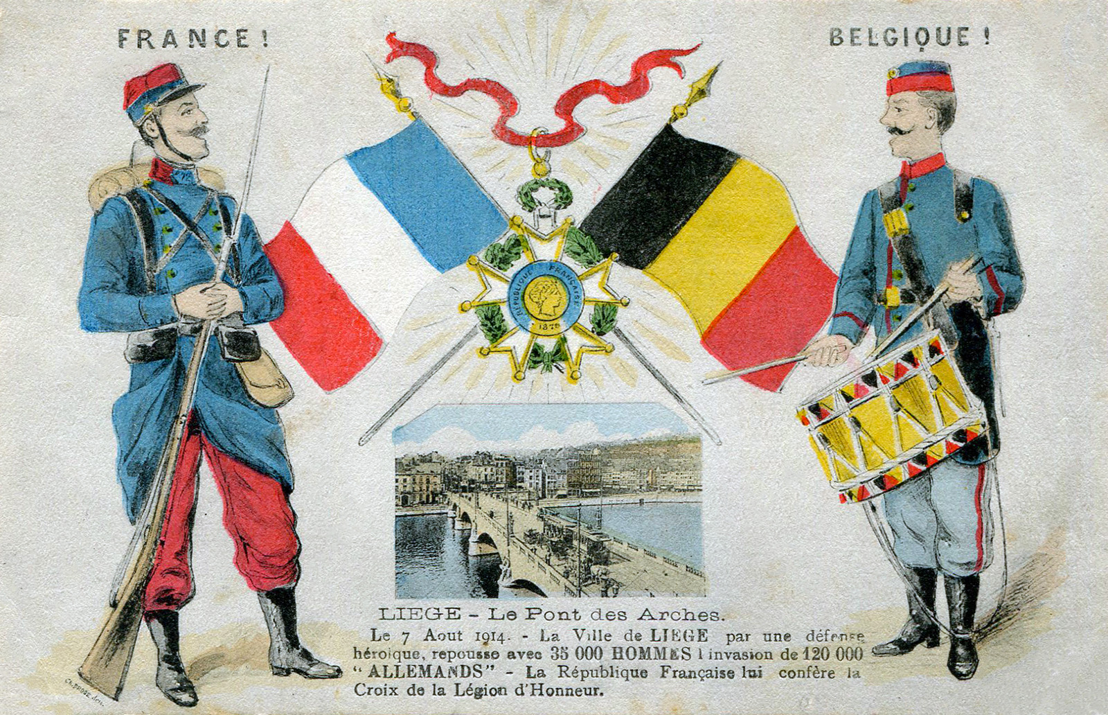 Le Roi Albert 1er associé à la glorieuse résistance liégeoise, la Légion d’Honneur omniprésente.
