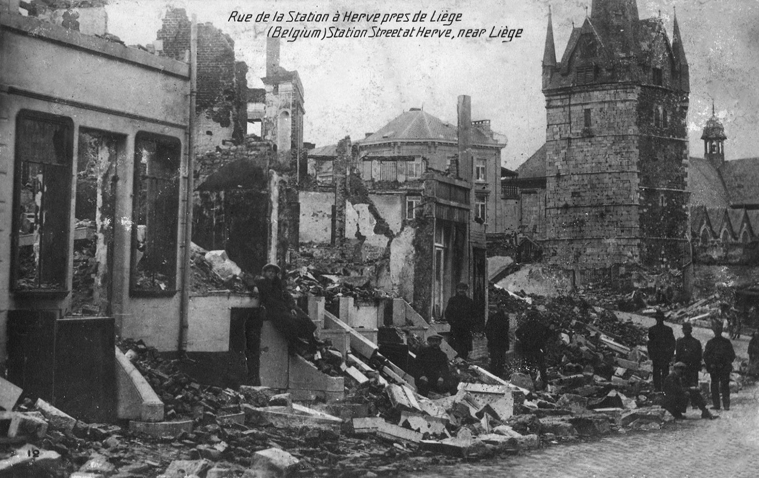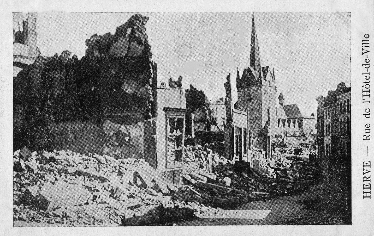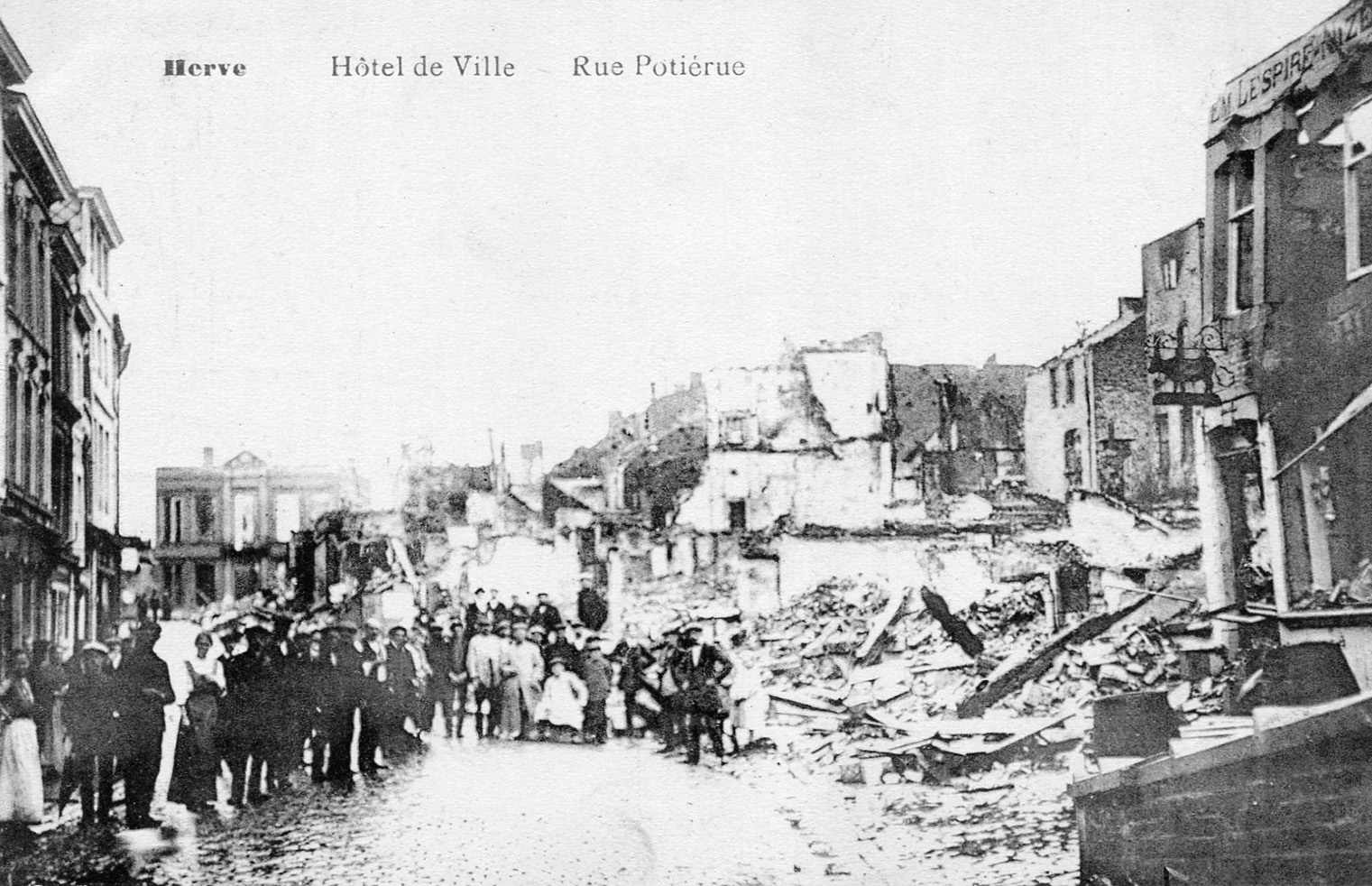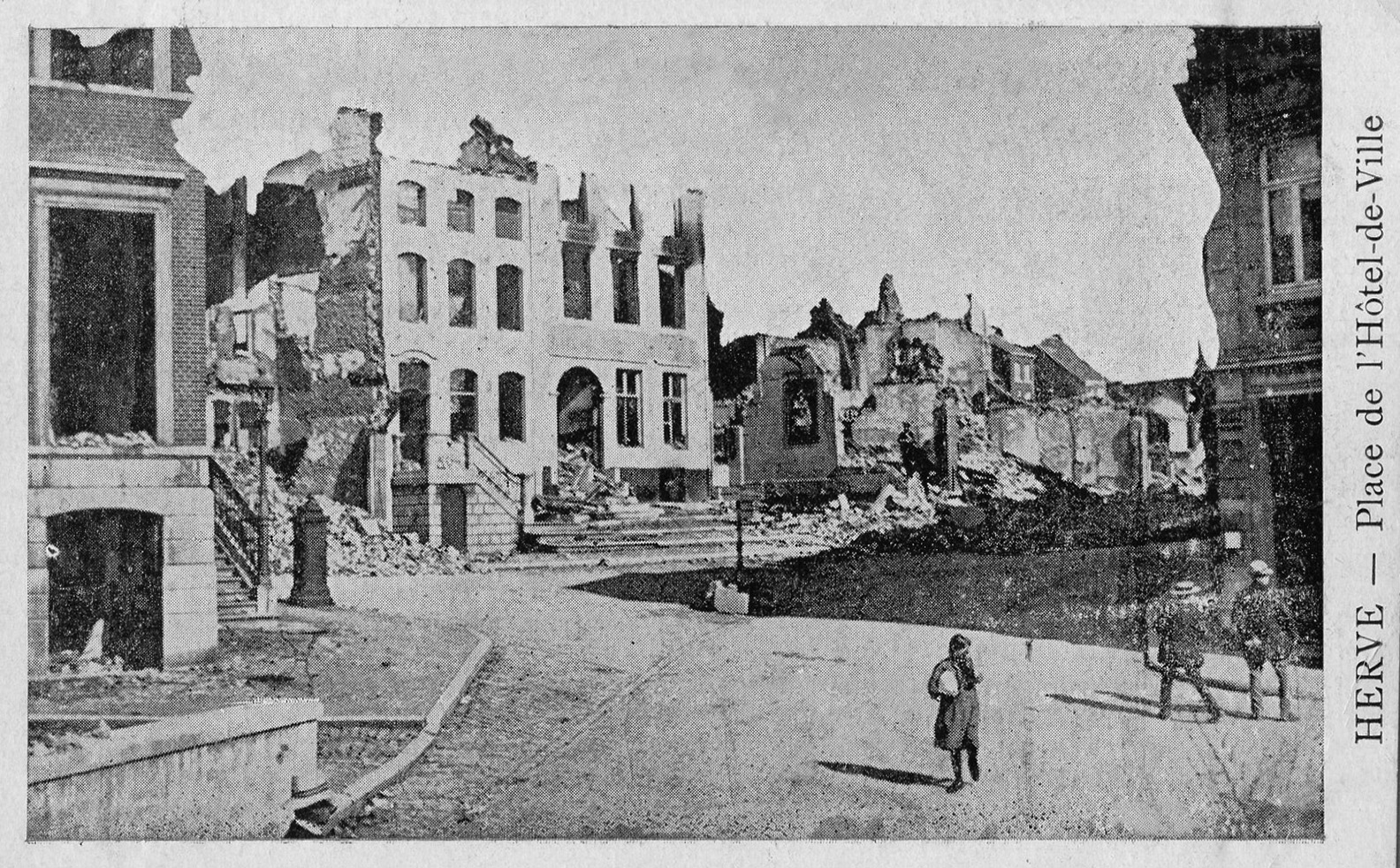 Herve a le douloureux privilège d’être la première ville martyre de Belgique, dès le début de la première guerre mondiale. Les Allemands traversent la ville dès le 4 août, mais les 5 et 6 août, frustrés par la défense inattendue du fort de Fléron, les Allemands en retraite mettent la ville à sac : pillage exécutions de civils, bâtiments incendiés.