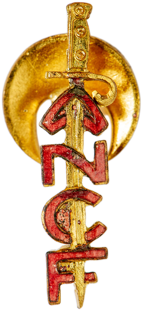 Broche et épinglettes en rapport avec la Carte et la Croix du Feu.