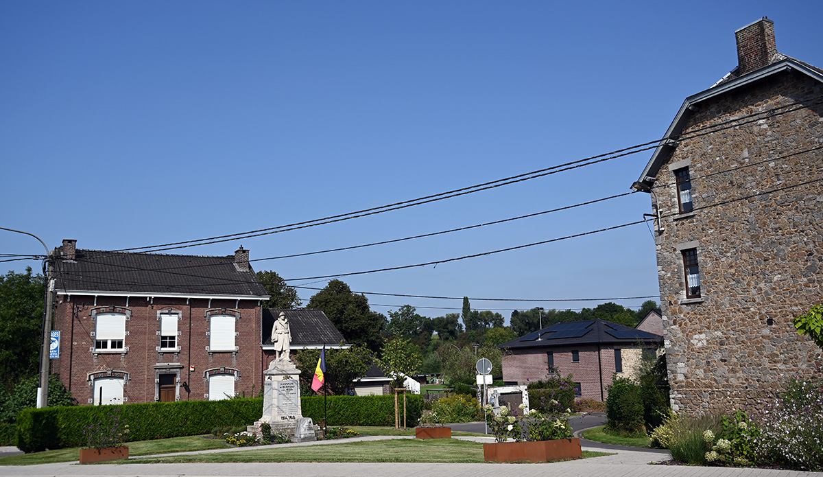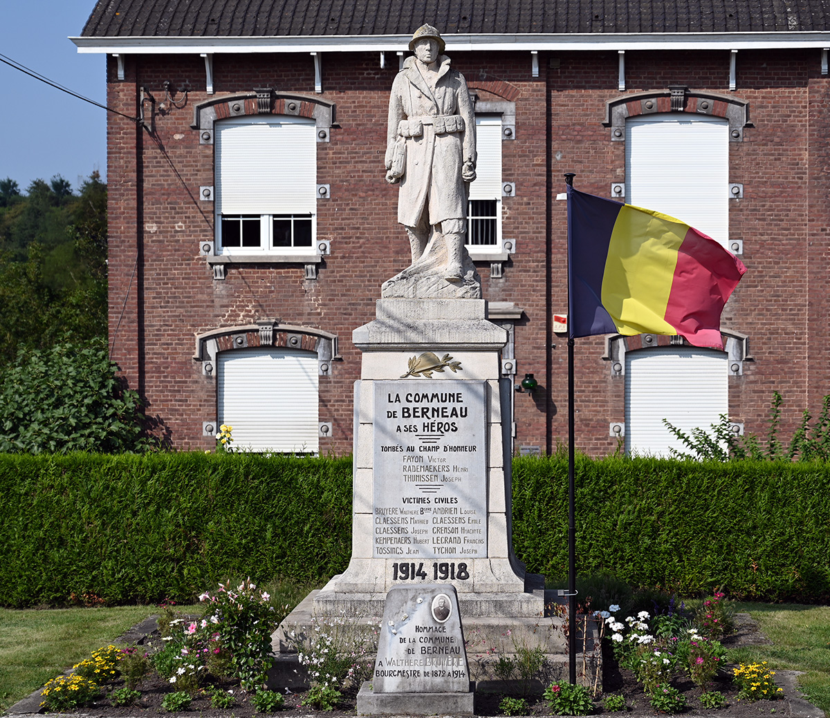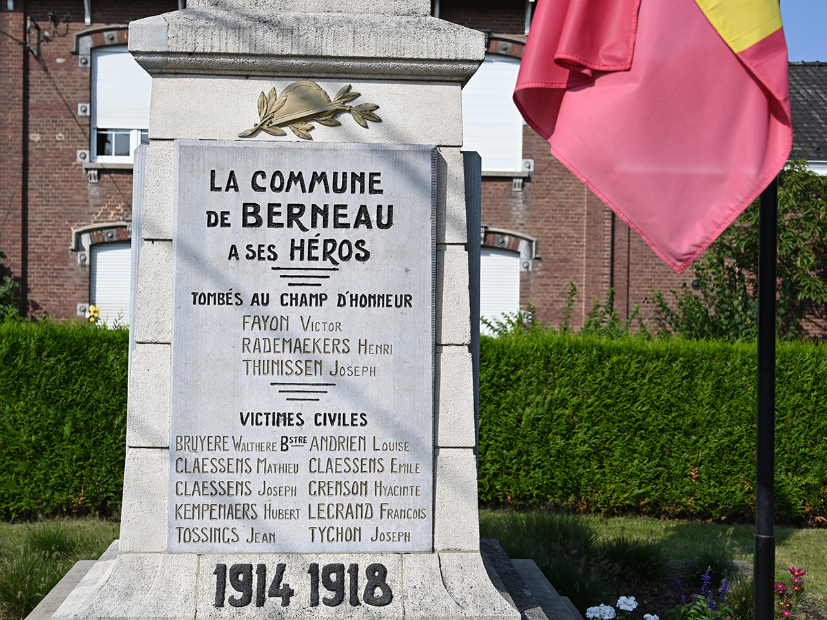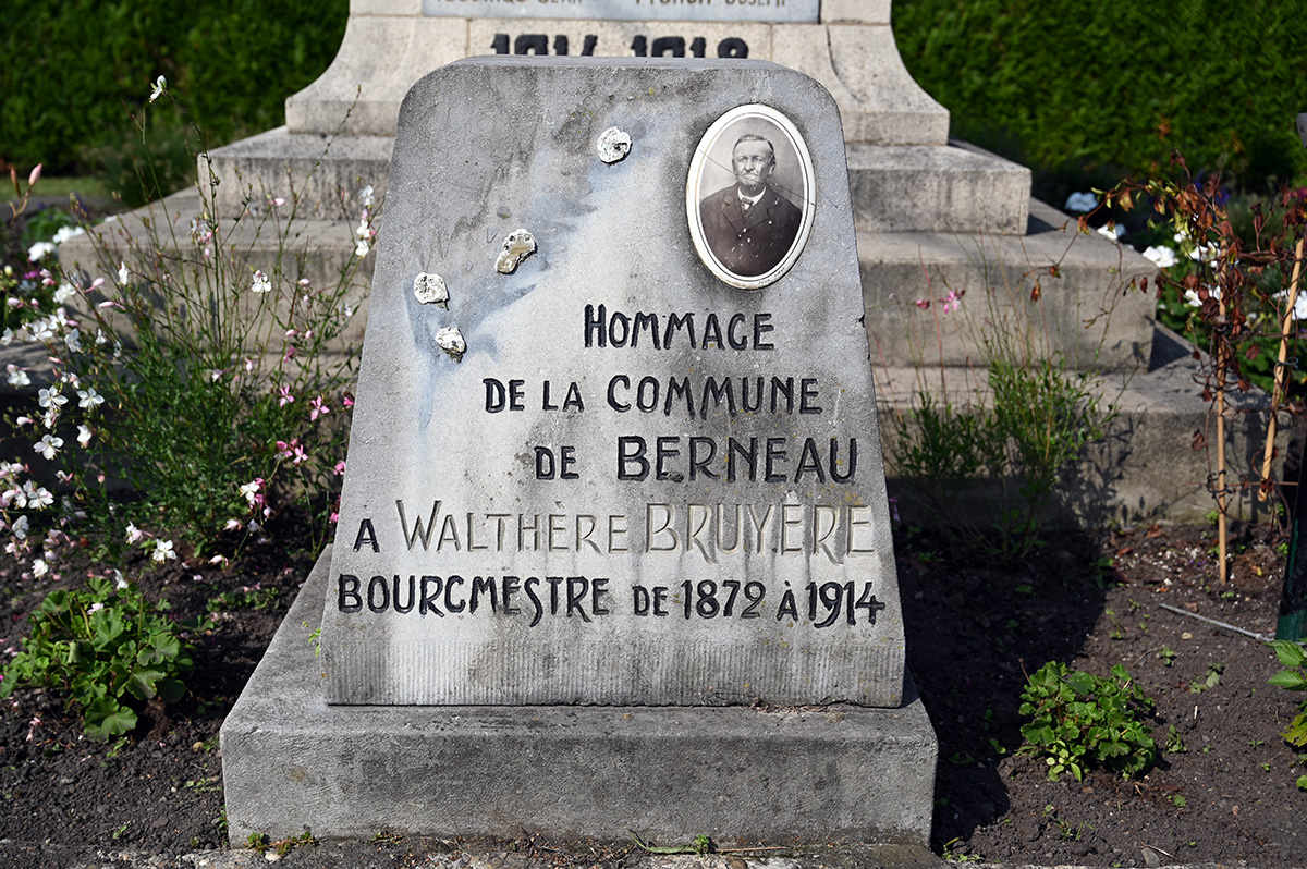 Monument aux morts de Berneau et stèle à la mémoire du bourgmestre Bruyère.