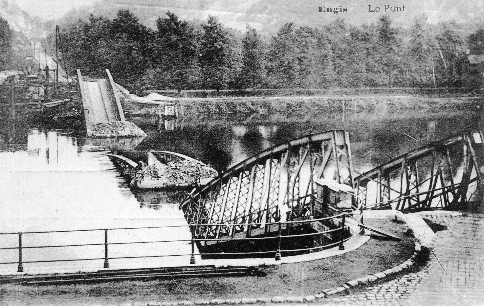 Pont détruit en août 1914 par le Génie belge, pour freiner l'avancée allemande.