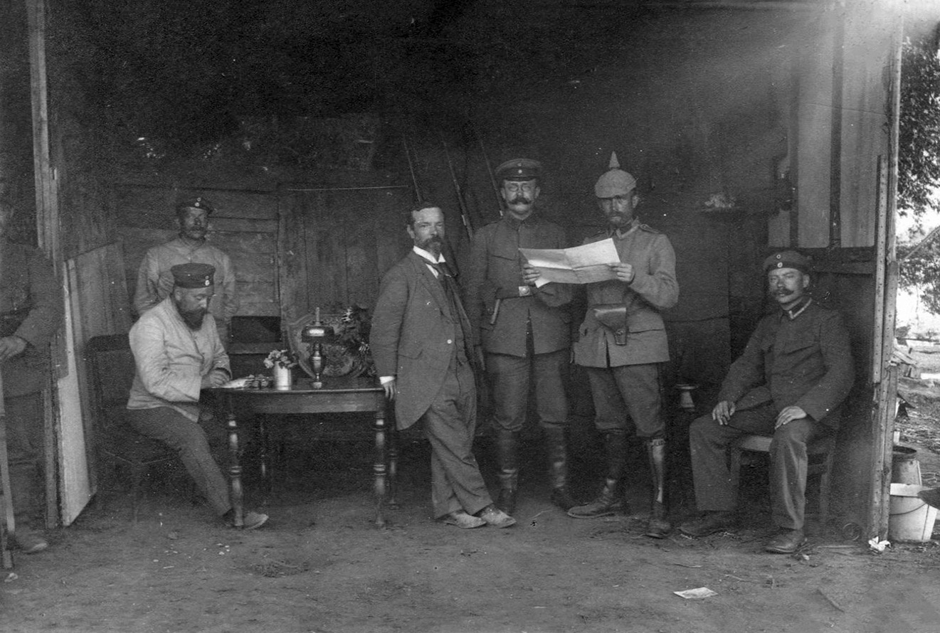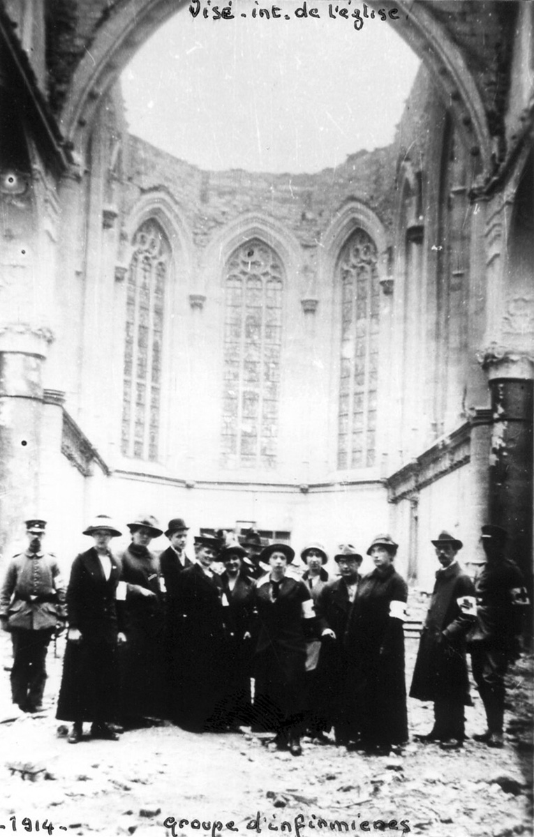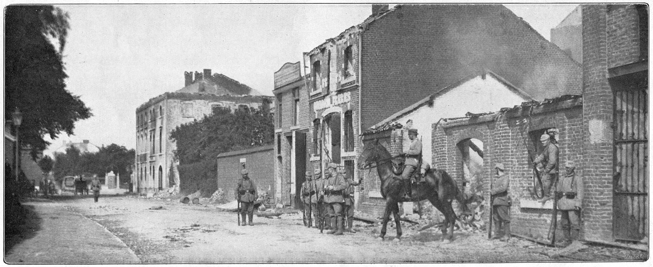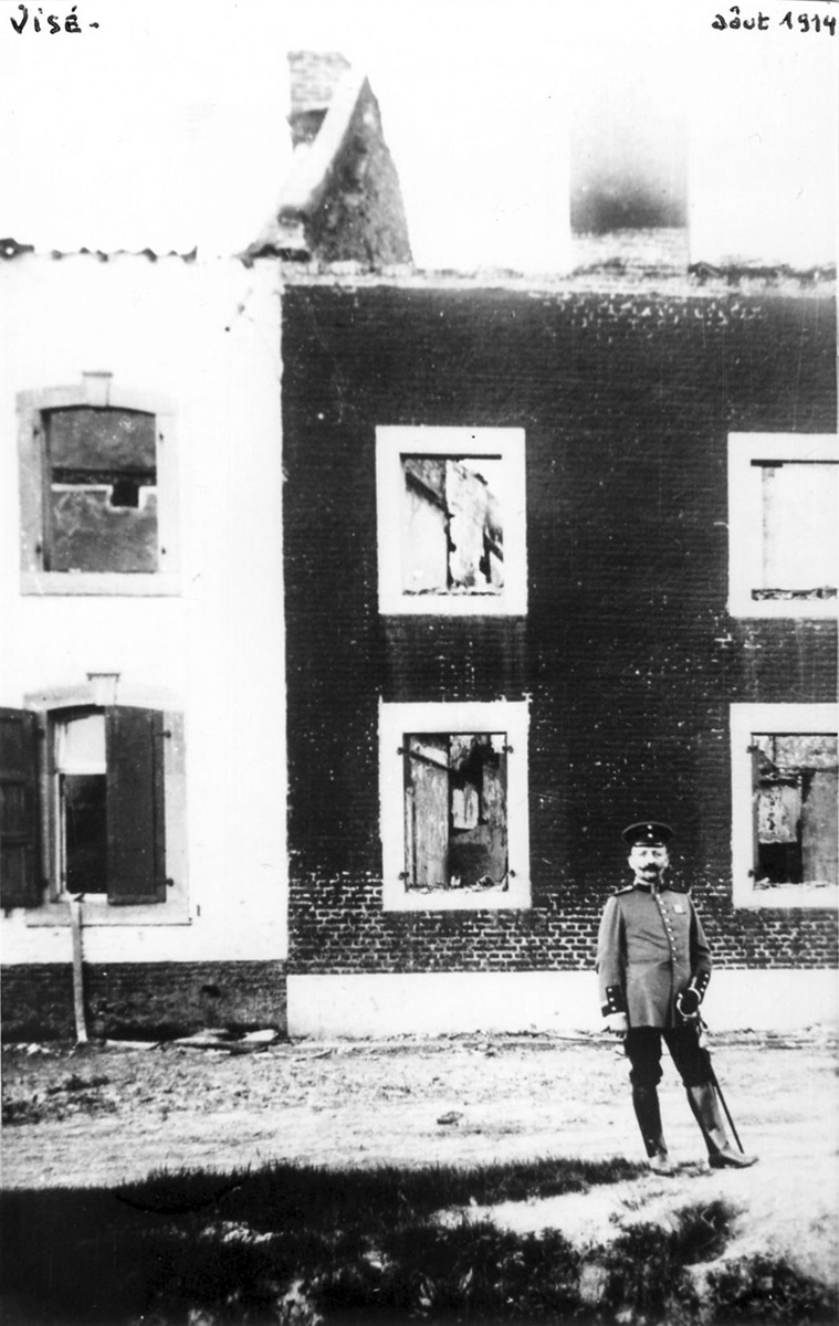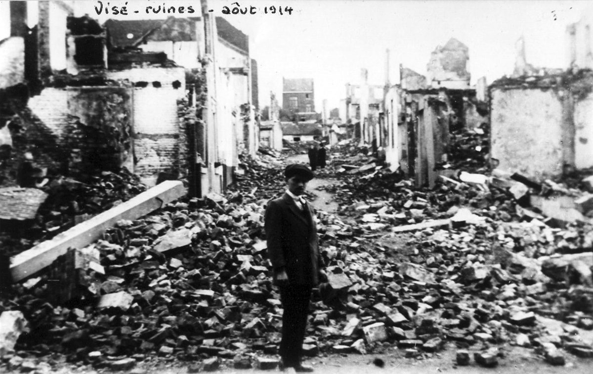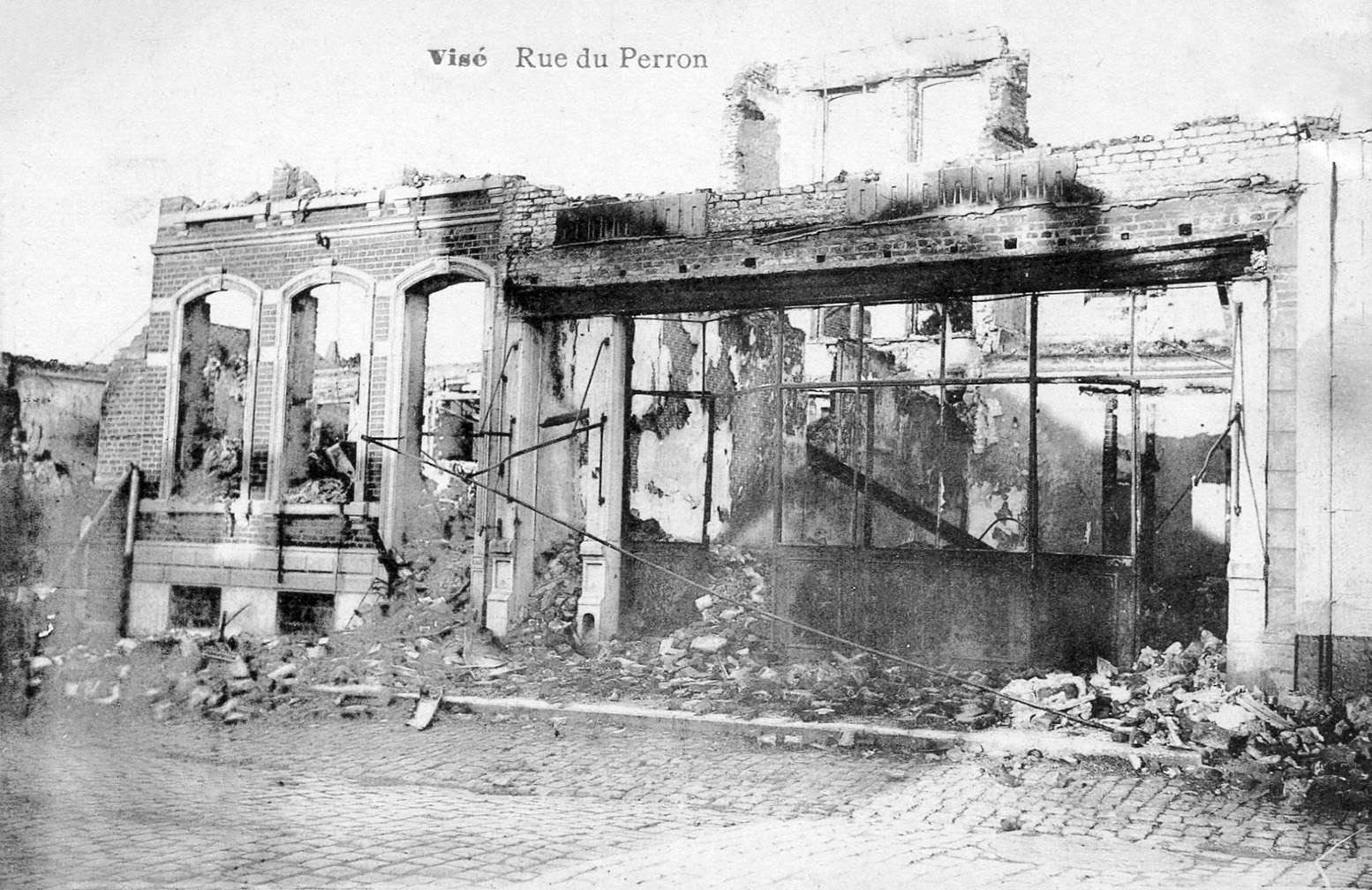 Les ravages causés par la guerre à Visé. Les soldats allemands fouillent les maisons détruites et les décombres.