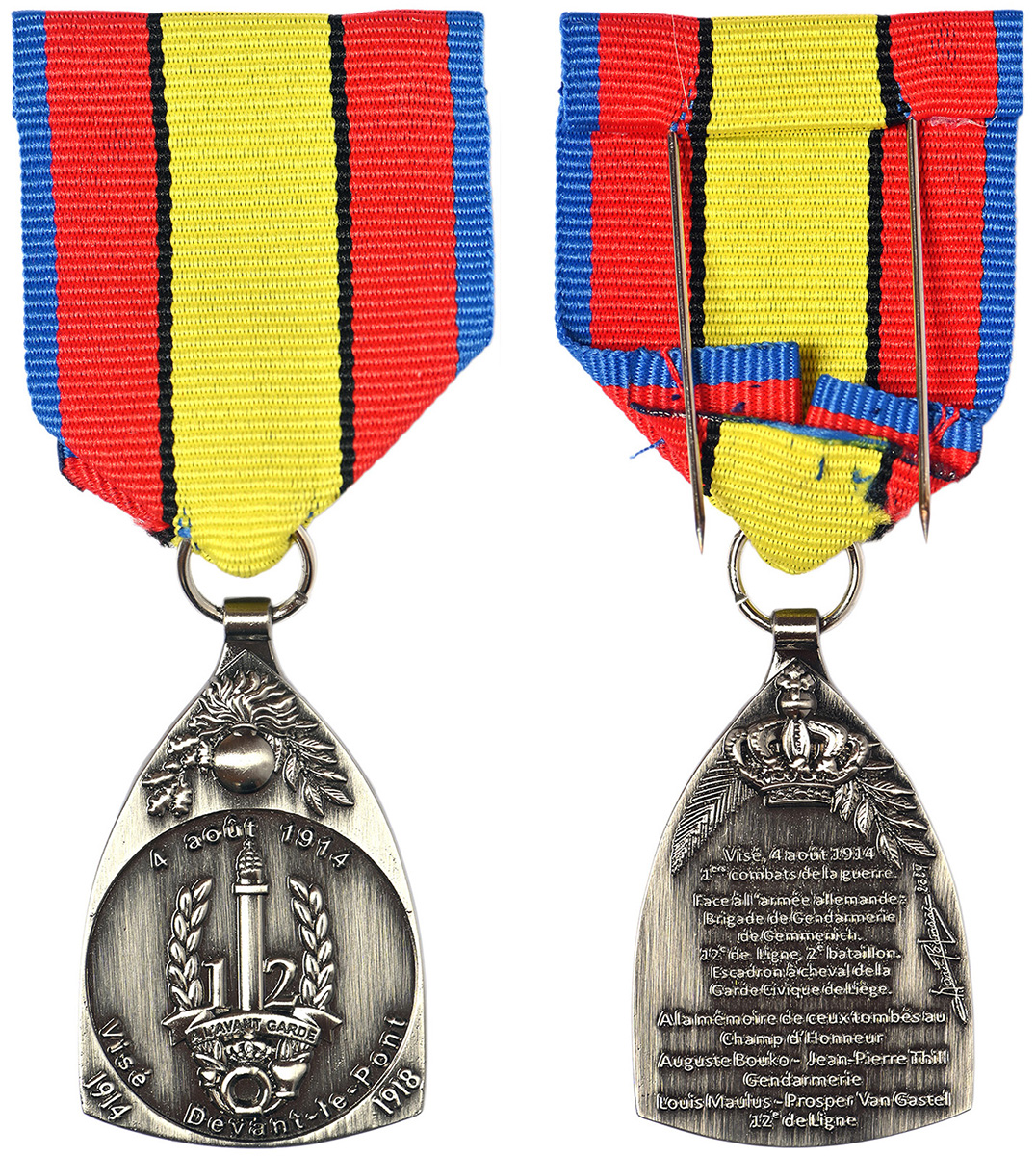 Appelée aussi "médaille de Visé Devant-le-Pont 1914". L'explication de cette médaille est donnée sur le site de son créateur M. Poelmans.