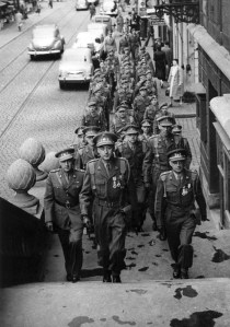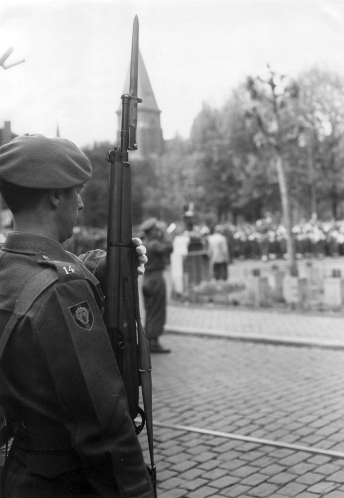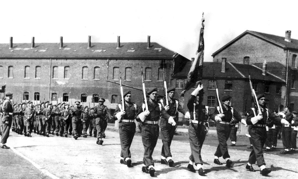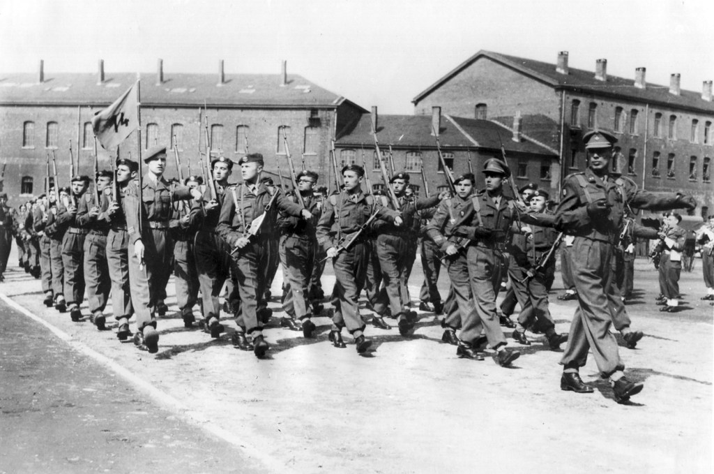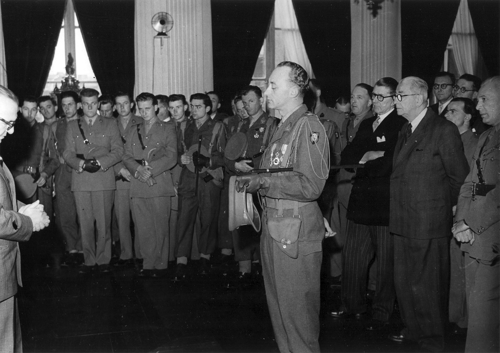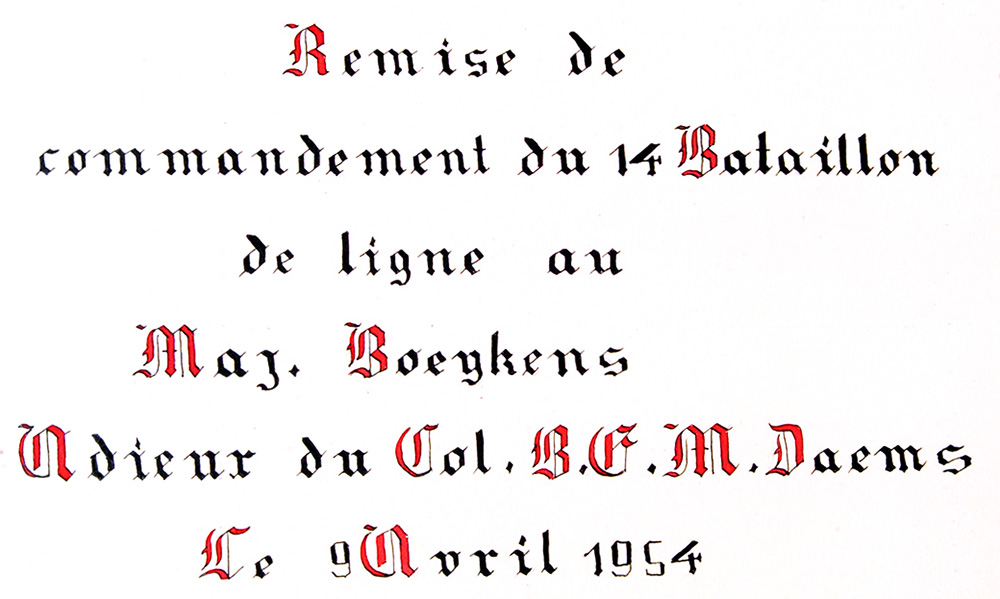 Colonel Bem DaemsMajor BoeykensReconnaissance comme chef de Corps du major Boeykens par le Colonel Bem Faveere.Fifi, la mascotte du 14LiLa Cie Etat-Major sous les ordres du Lt CooremansLe glorieux drapeau du 14LiReconnaissance des Majors Boogaerts, Commandant en second, et zaman, officier S3