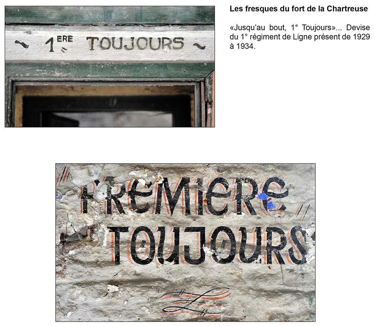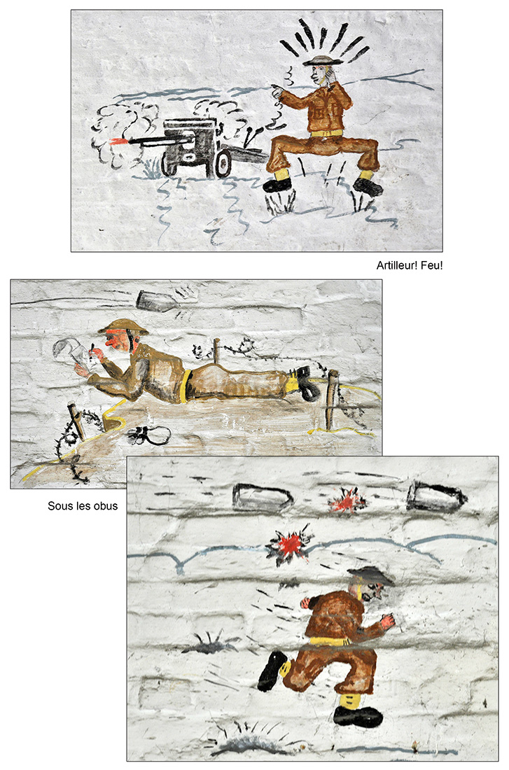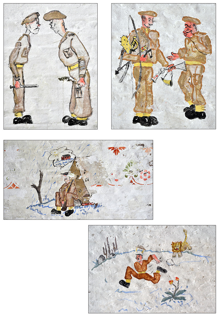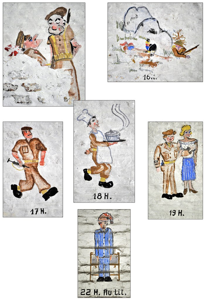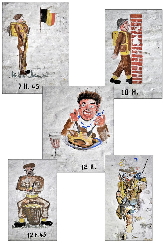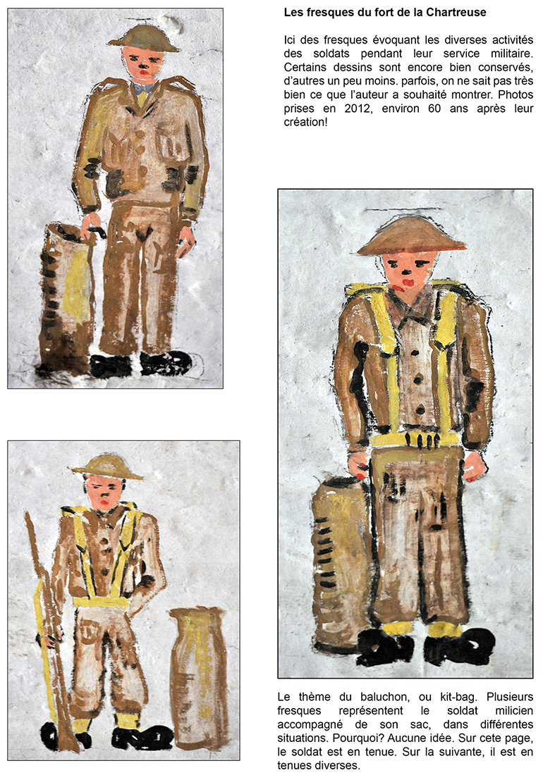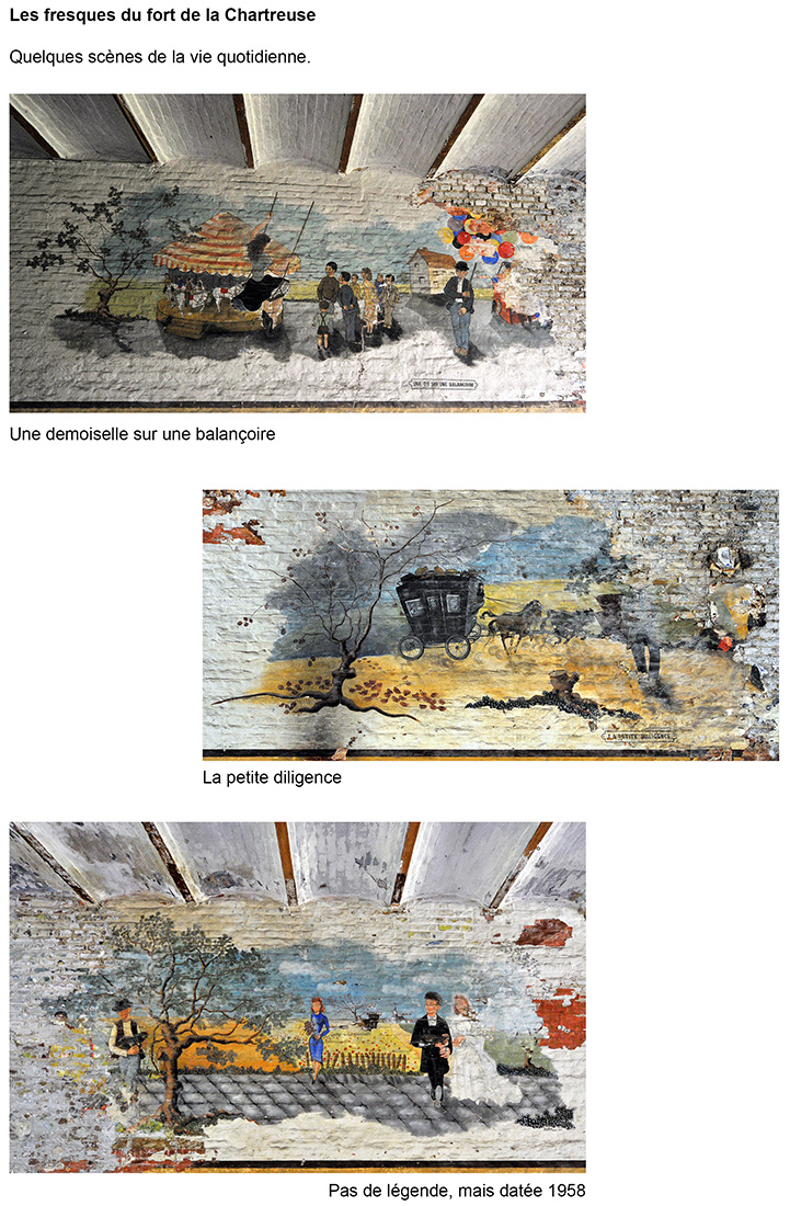 Bâtiment militaire emblématique de la Cité ardente, le fort de la Chartreuse se meurt lentement depuis le départ de l’armée belge en 1988. On y trouve encore de nombreuses fresques probablement peintes par des miliciens à la fibre artistique. Elles se trouvent essentiellement réunies dans le bâtiment principal, l’ancien fort hollandais en U. Les photos reprises ici ont été prises entre les années 2012 et 2013. Il était déjà fort tard, certaines étant dégradées, d’autres ayant carrément disparu, soit à cause du délabrement des bâtiments, soit sous les œuvres de jeunes artistes liégeois en mal de murs à peindre. Les photographier permet de les sauver pour la postérité.