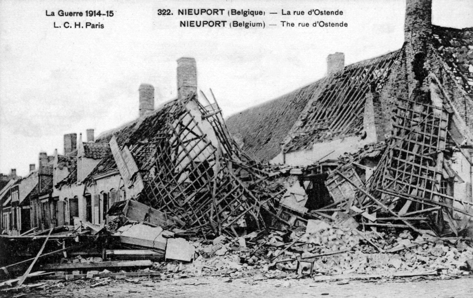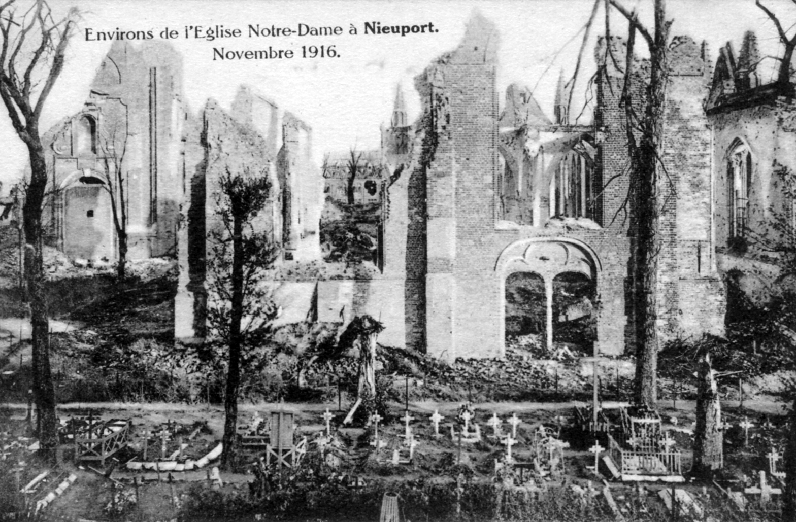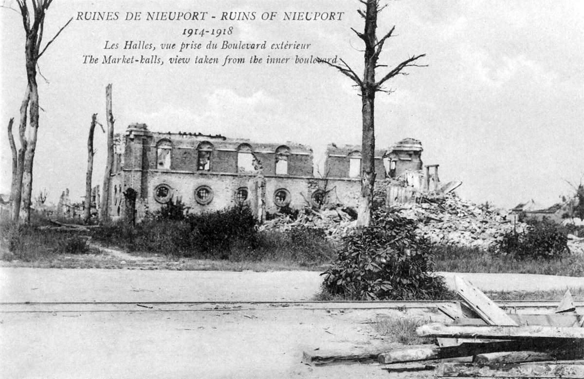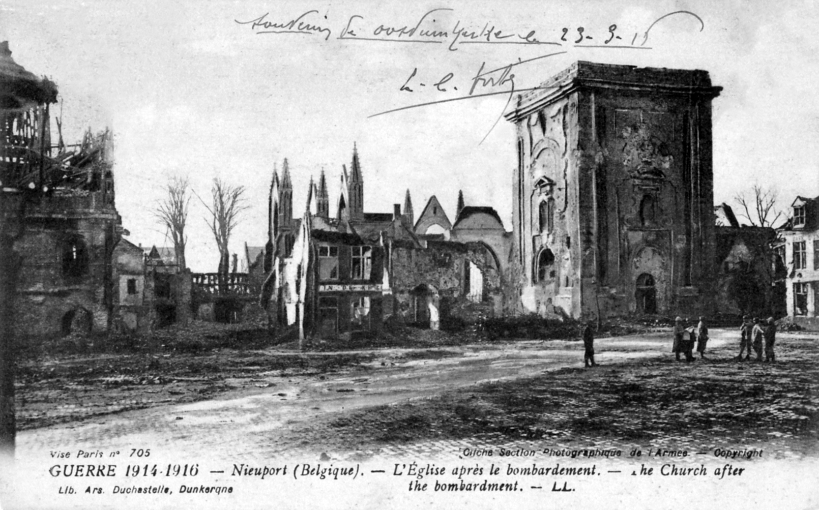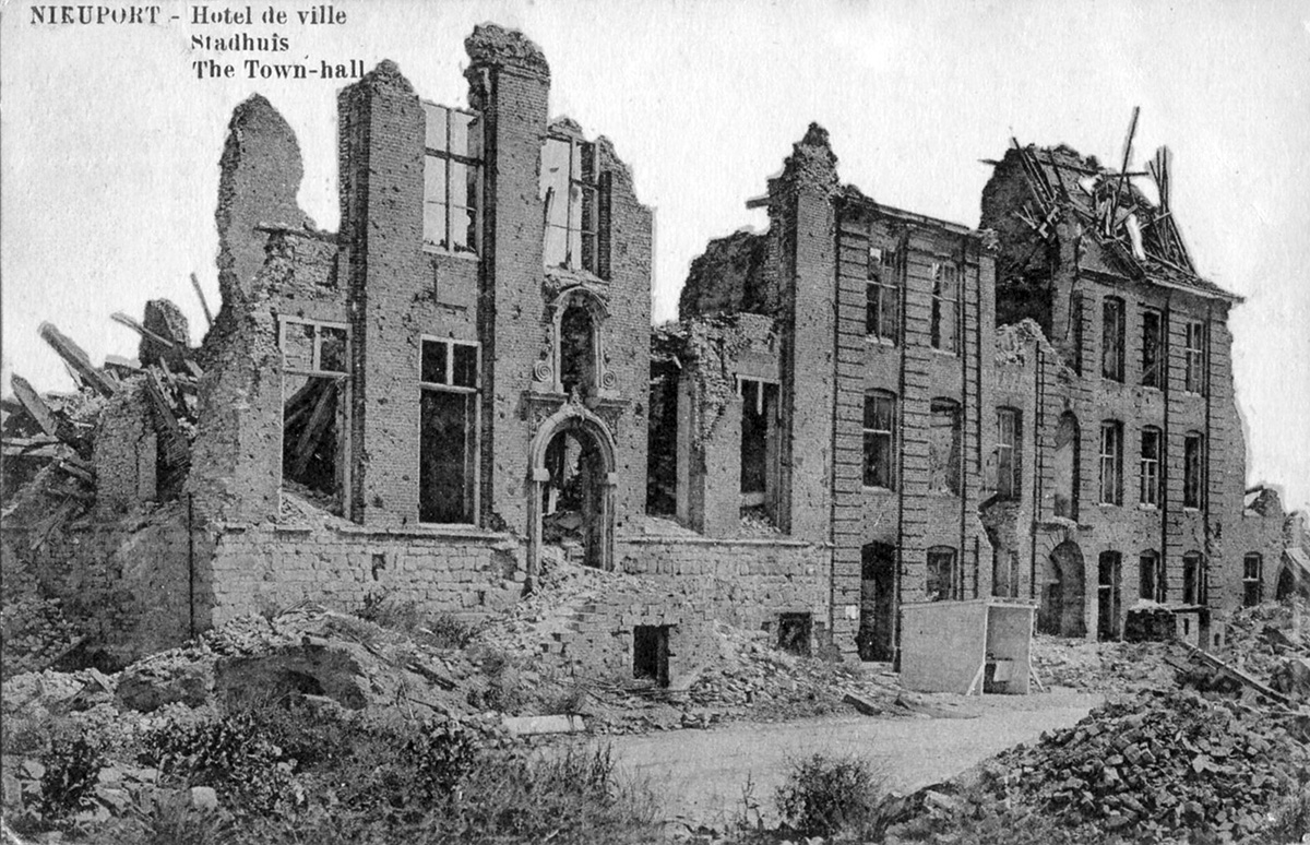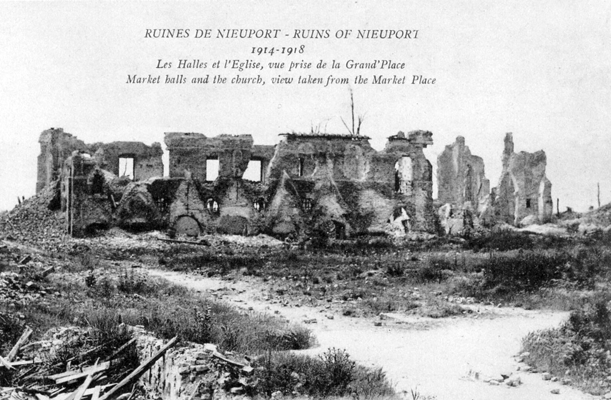 "Pendant la bataille de l'Yser, la ville fut entièrement détruite par les bombardements ; le peintre officiel des armées françaises, François Flameng, réalisa de nombreux croquis et dessins des combats qui eurent lieu ici pendant ce conflit, et qui parurent dans la revue L'Illustration. Certains bâtiments historiques furent reconstruits dans le style original après le conflit, comme la halle aux Grains et l'église Notre-Dame.