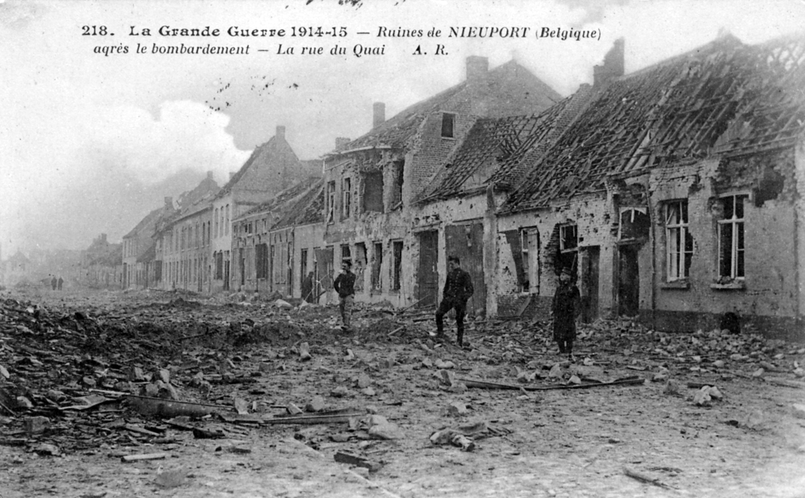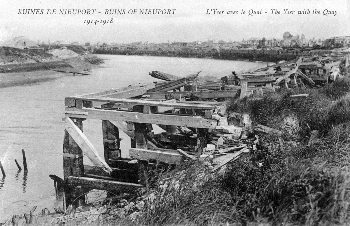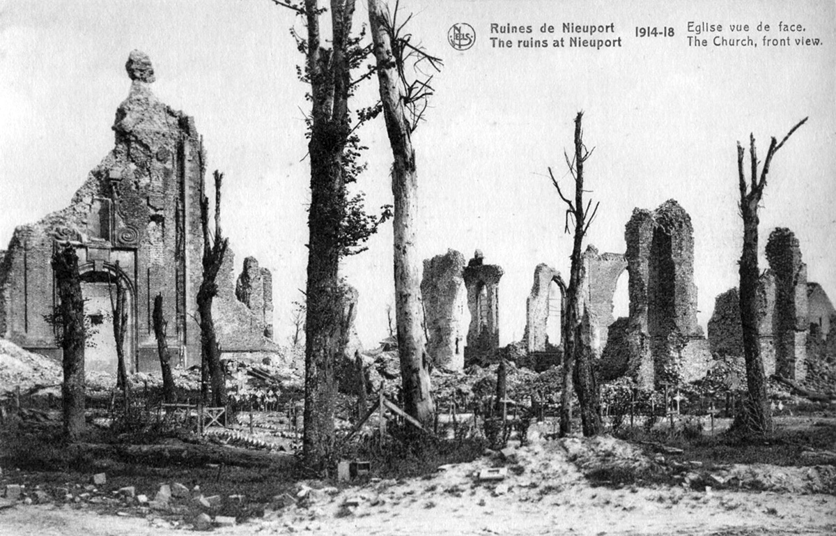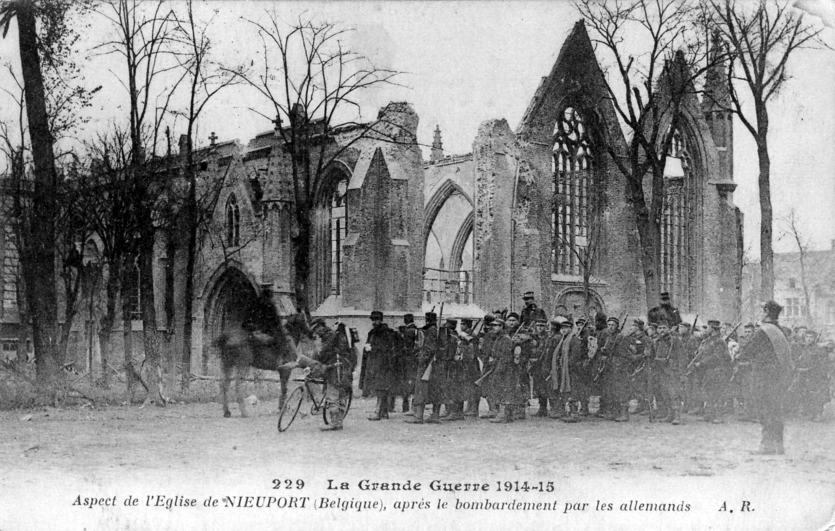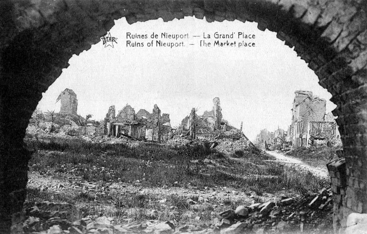 "Pendant la bataille de l'Yser, la ville fut entièrement détruite par les bombardements ; le peintre officiel des armées françaises, François Flameng, réalisa de nombreux croquis et dessins des combats qui eurent lieu ici pendant ce conflit, et qui parurent dans la revue L'Illustration. Certains bâtiments historiques furent reconstruits dans le style original après le conflit, comme la halle aux Grains et l'église Notre-Dame.