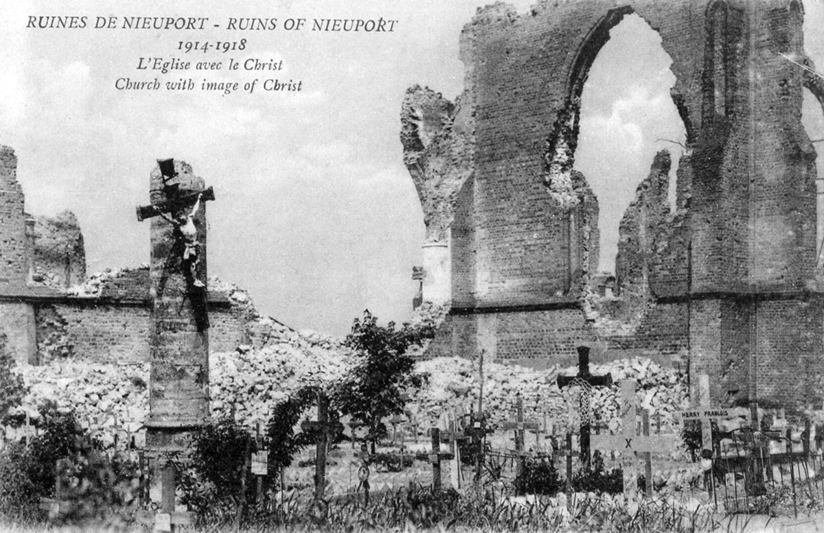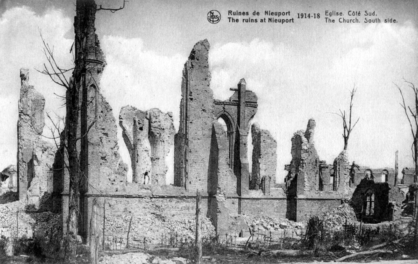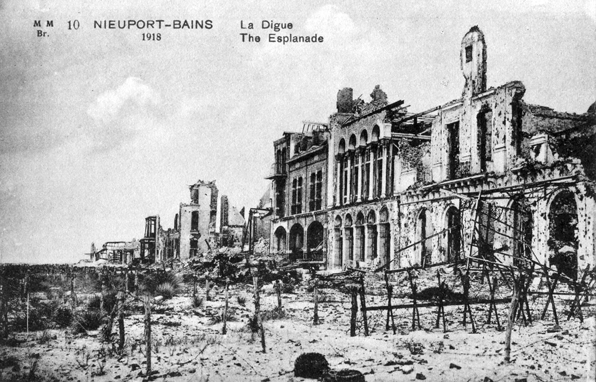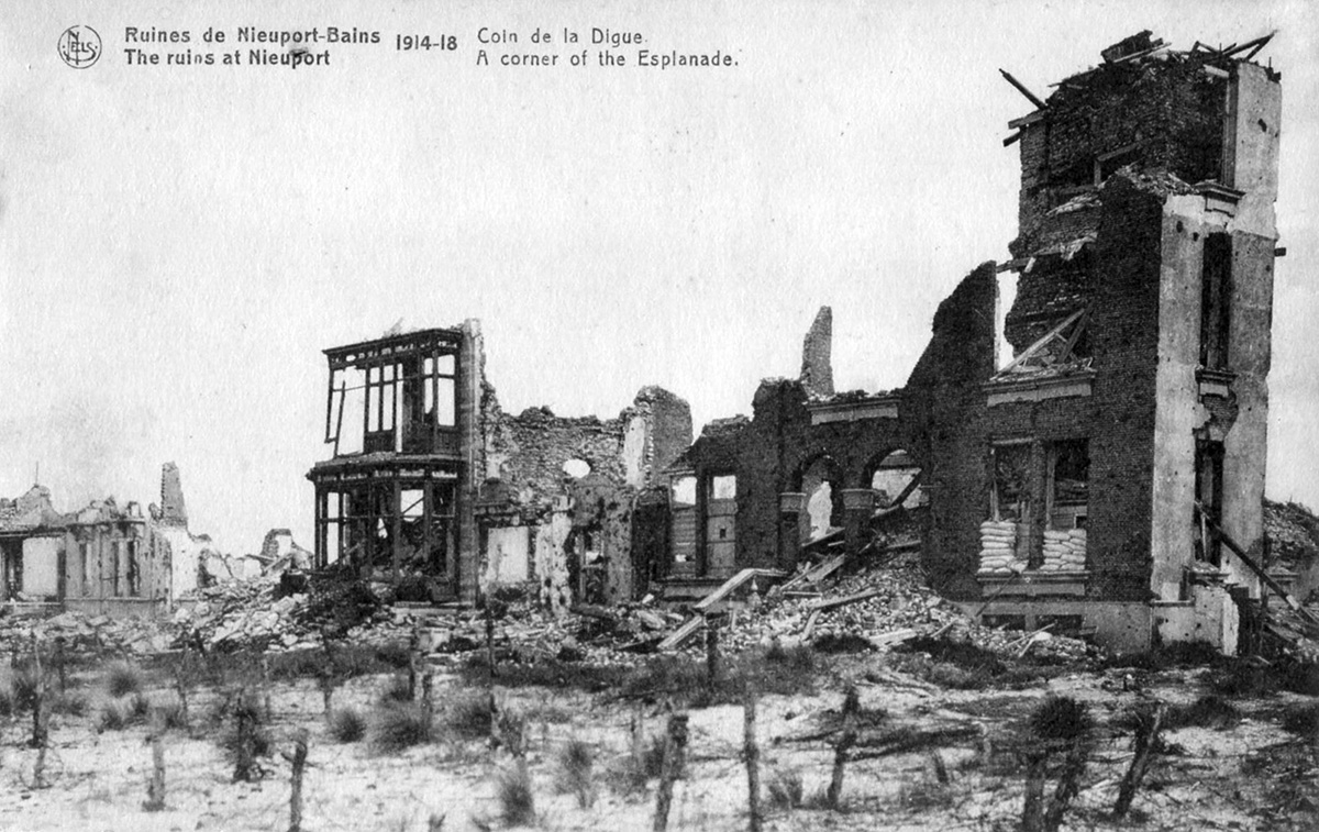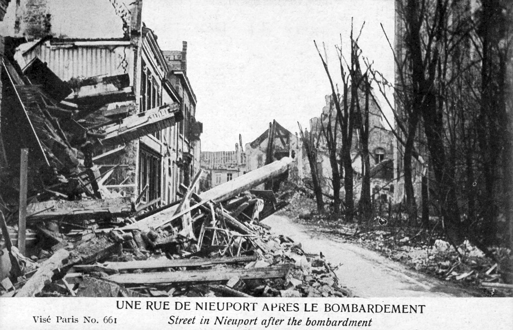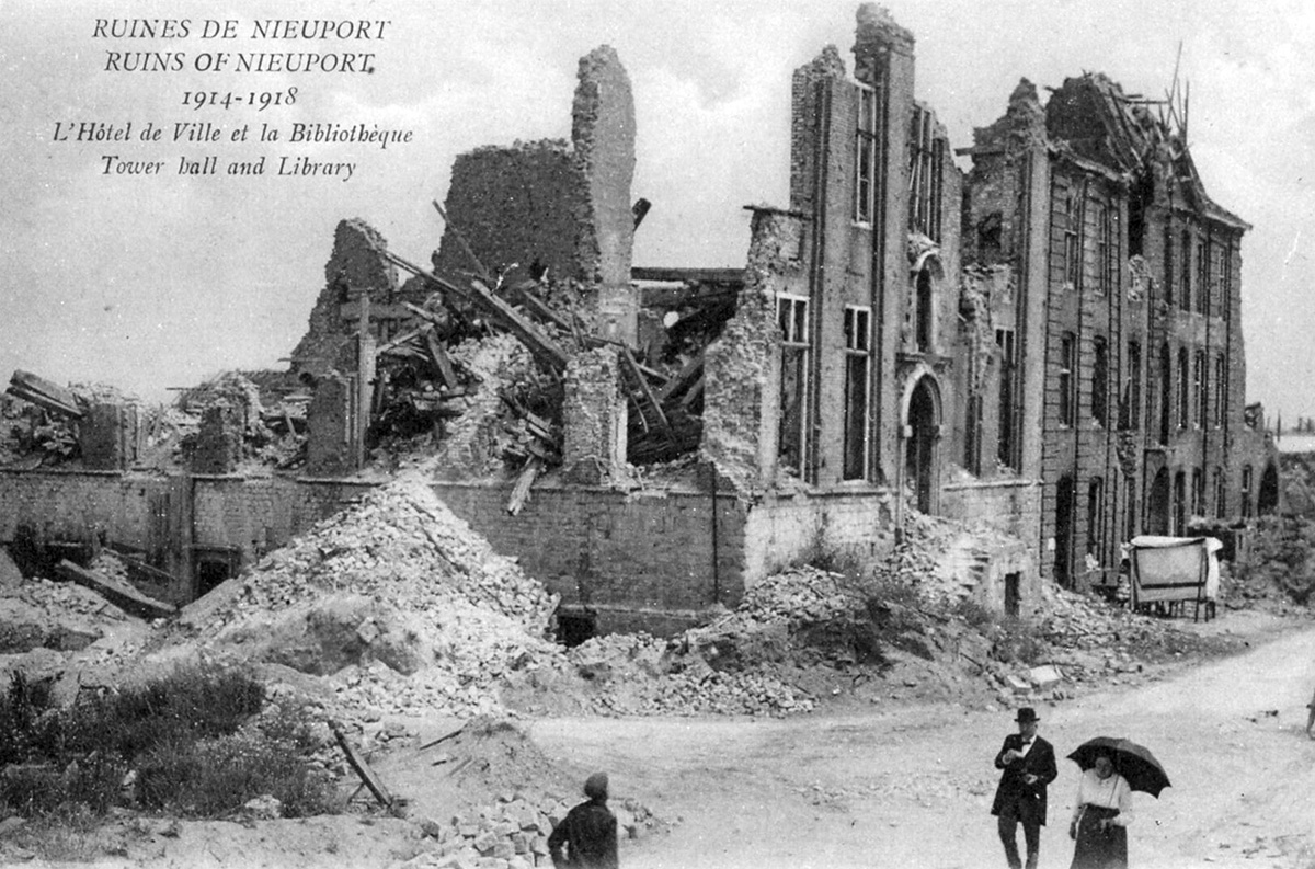 "Pendant la bataille de l'Yser, la ville fut entièrement détruite par les bombardements ; le peintre officiel des armées françaises, François Flameng, réalisa de nombreux croquis et dessins des combats qui eurent lieu ici pendant ce conflit, et qui parurent dans la revue L'Illustration. Certains bâtiments historiques furent reconstruits dans le style original après le conflit, comme la halle aux Grains et l'église Notre-Dame.