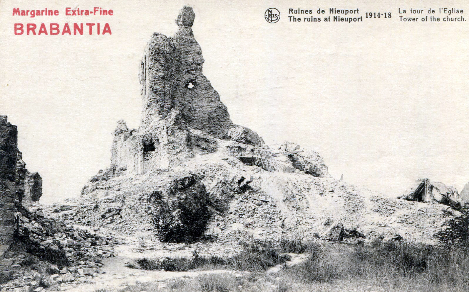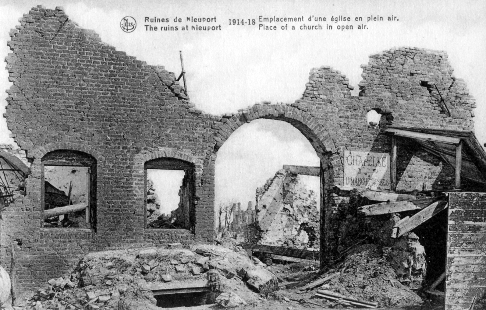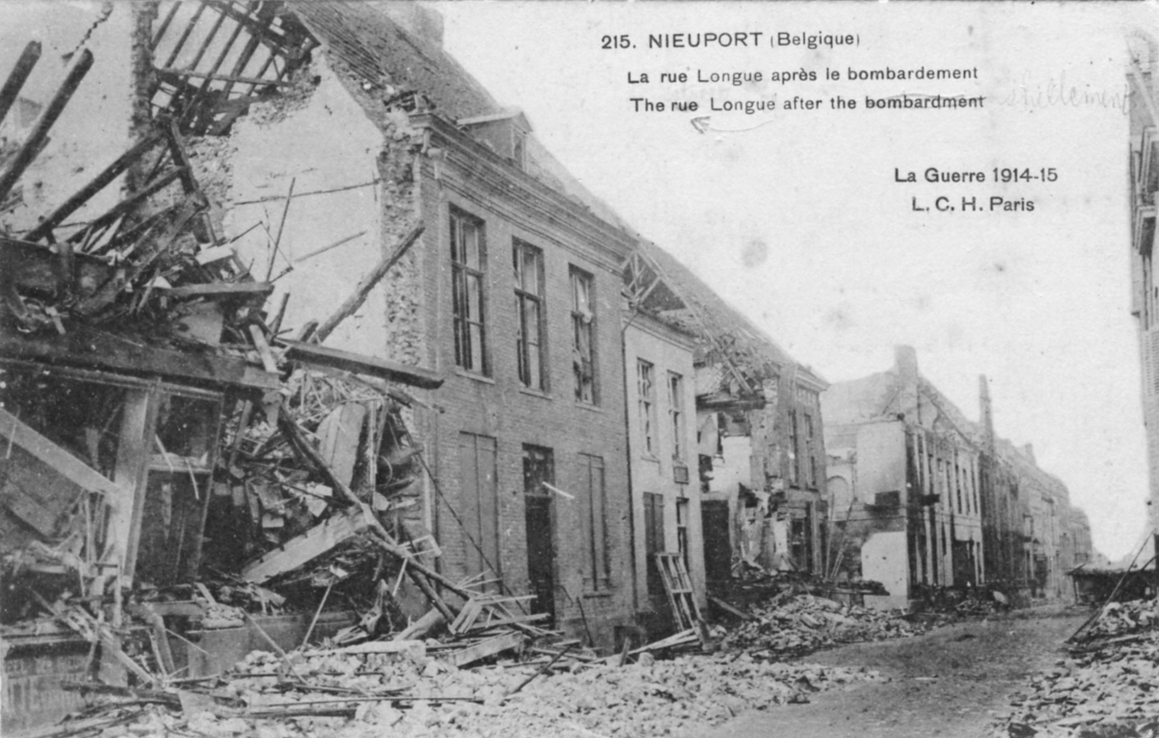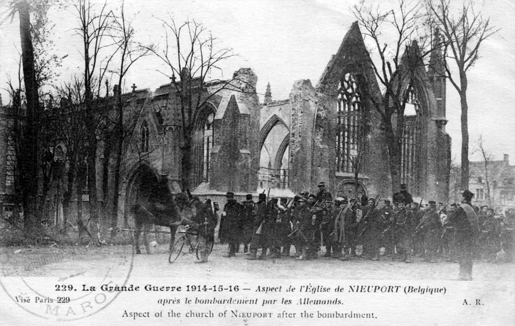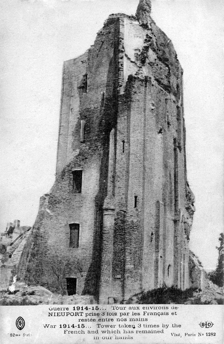 "Pendant la bataille de l'Yser, la ville fut entièrement détruite par les bombardements ; le peintre officiel des armées françaises, François Flameng, réalisa de nombreux croquis et dessins des combats qui eurent lieu ici pendant ce conflit, et qui parurent dans la revue L'Illustration. Certains bâtiments historiques furent reconstruits dans le style original après le conflit, comme la halle aux Grains et l'église Notre-Dame.