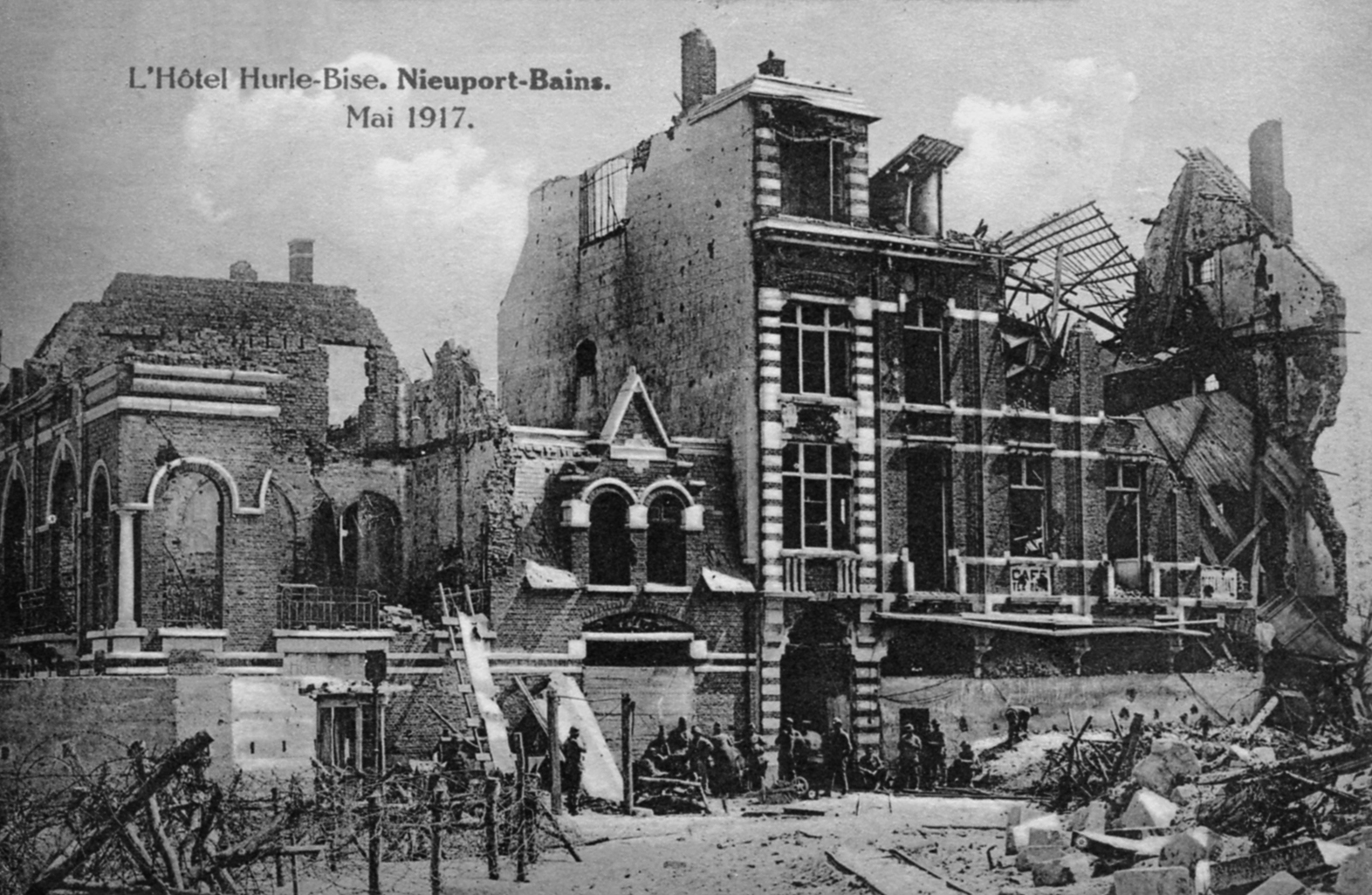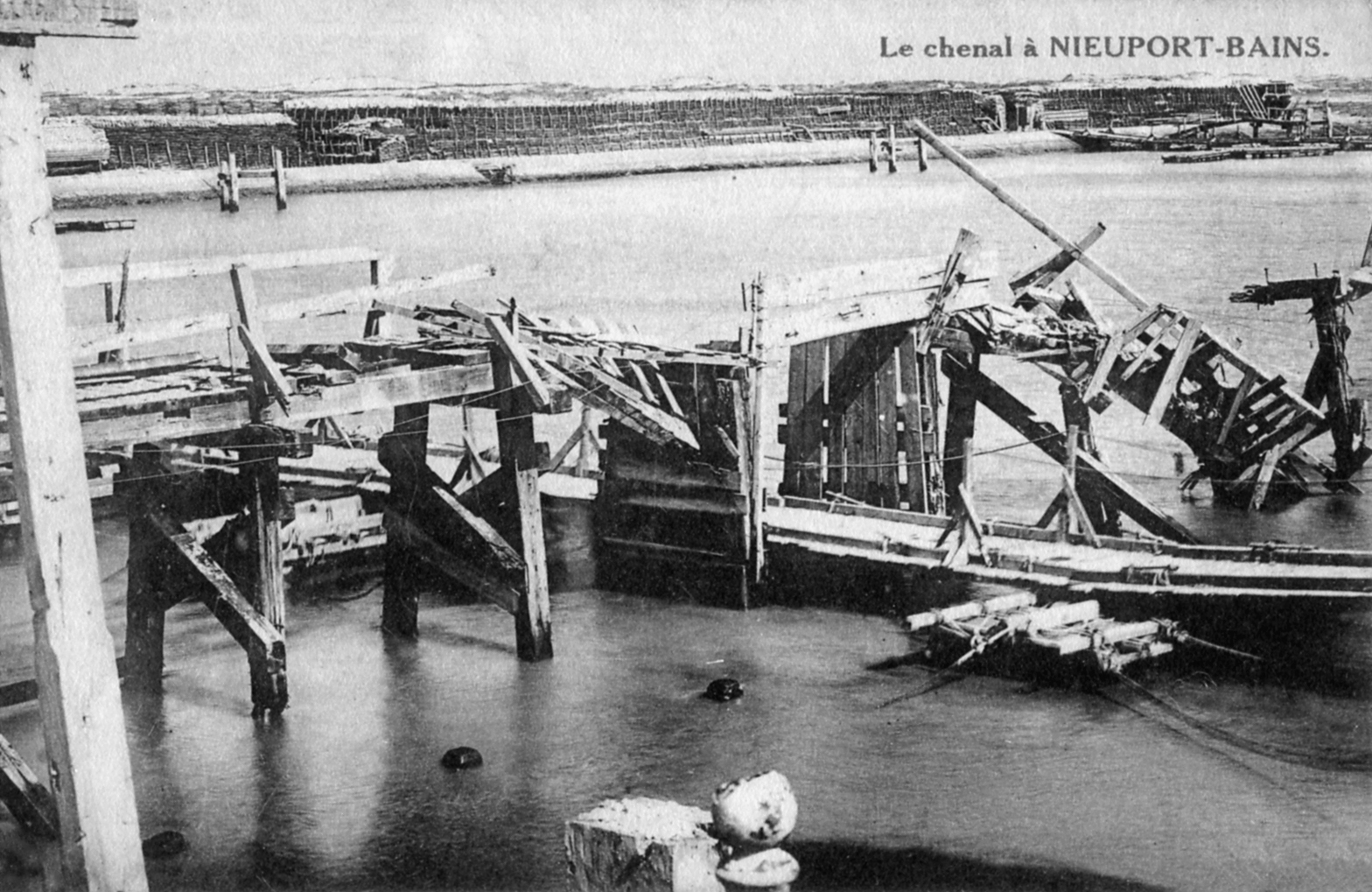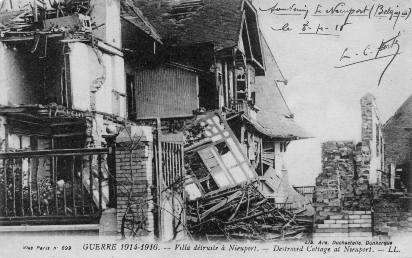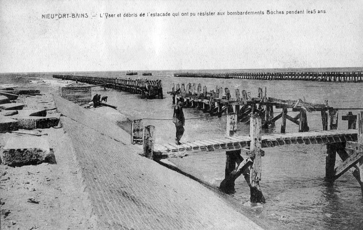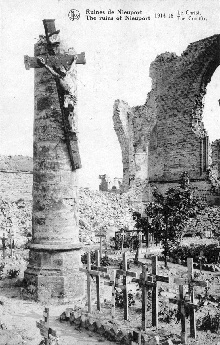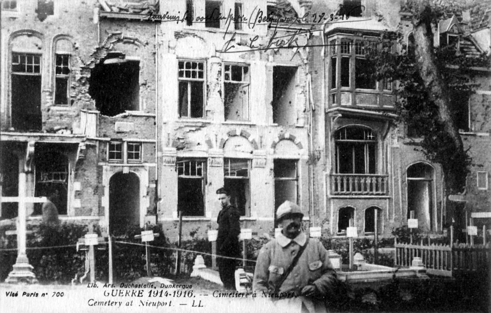 "Pendant la bataille de l'Yser, la ville fut entièrement détruite par les bombardements ; le peintre officiel des armées françaises, François Flameng, réalisa de nombreux croquis et dessins des combats qui eurent lieu ici pendant ce conflit, et qui parurent dans la revue L'Illustration. Certains bâtiments historiques furent reconstruits dans le style original après le conflit, comme la halle aux Grains et l'église Notre-Dame.