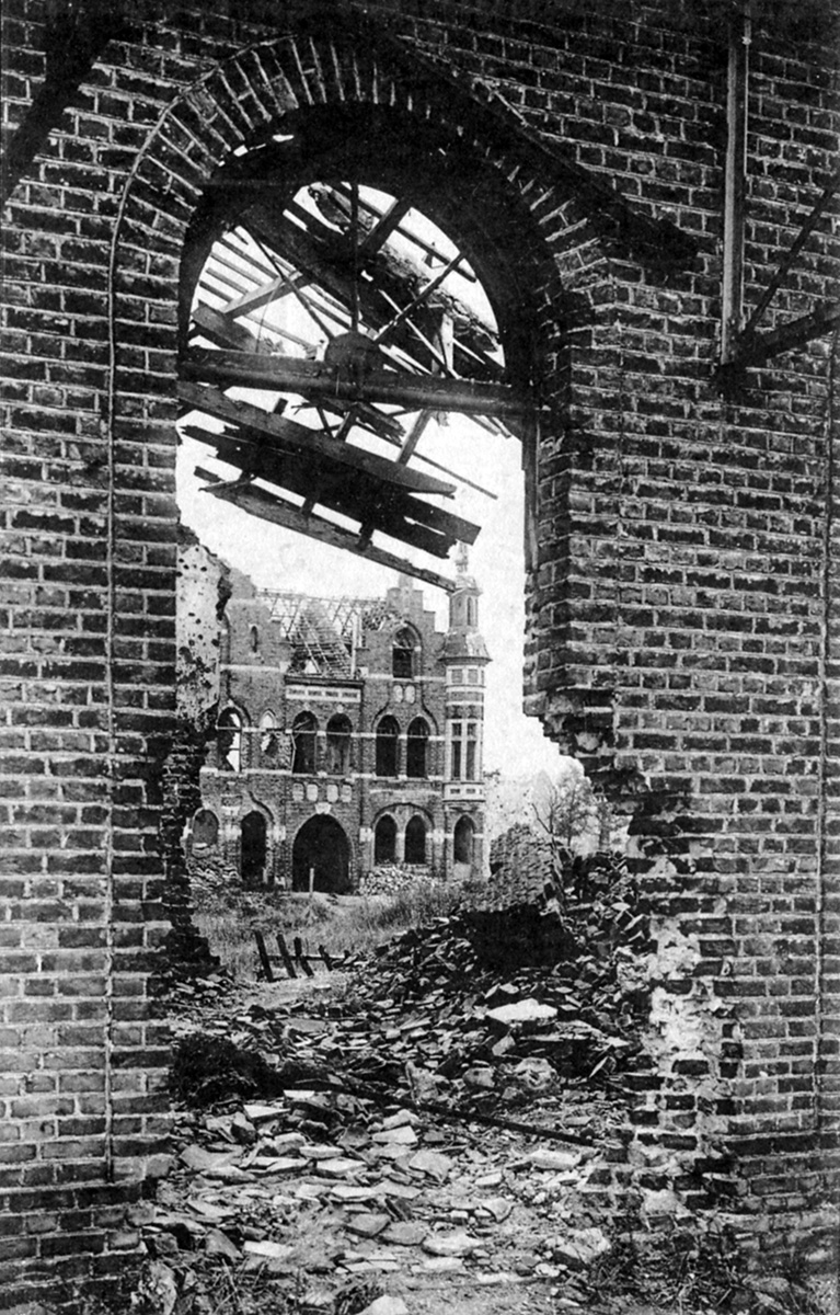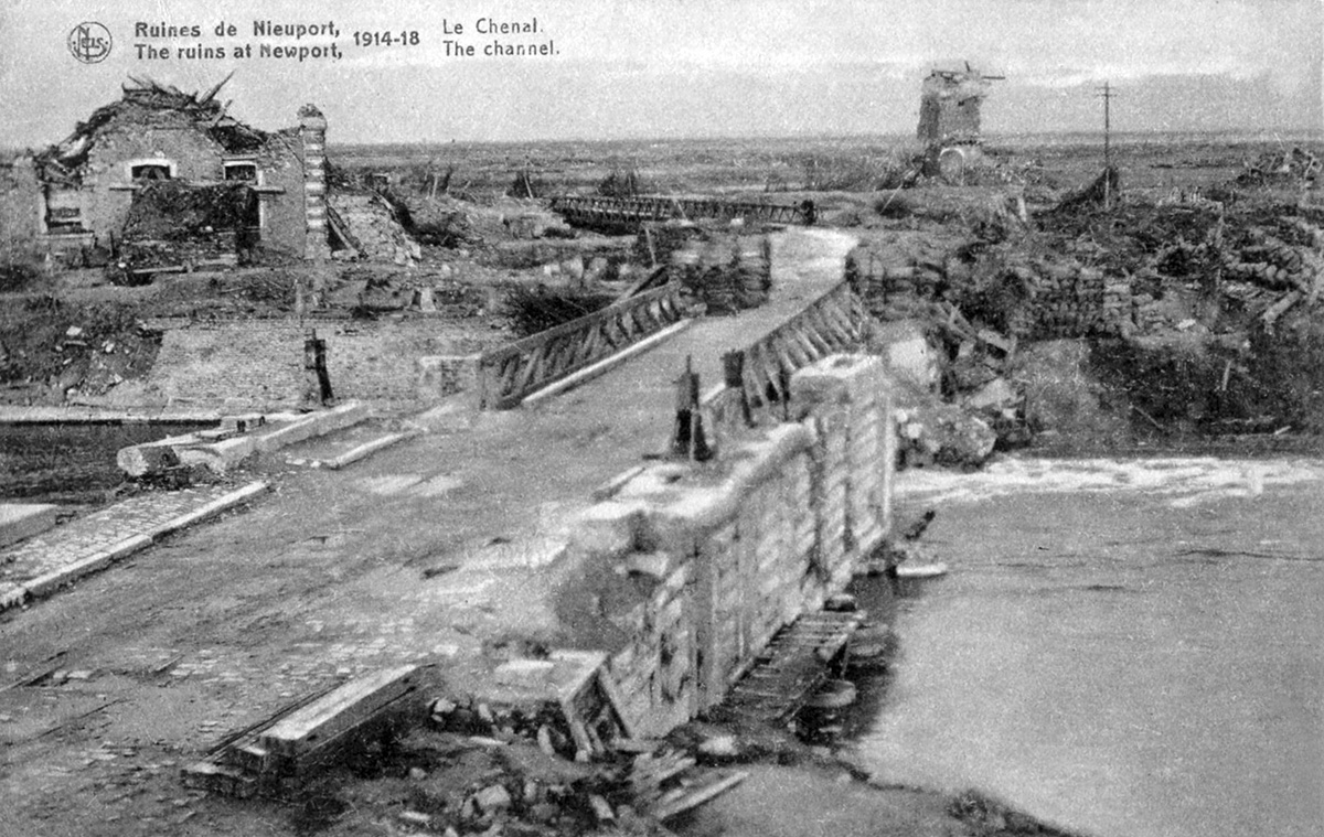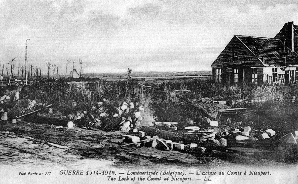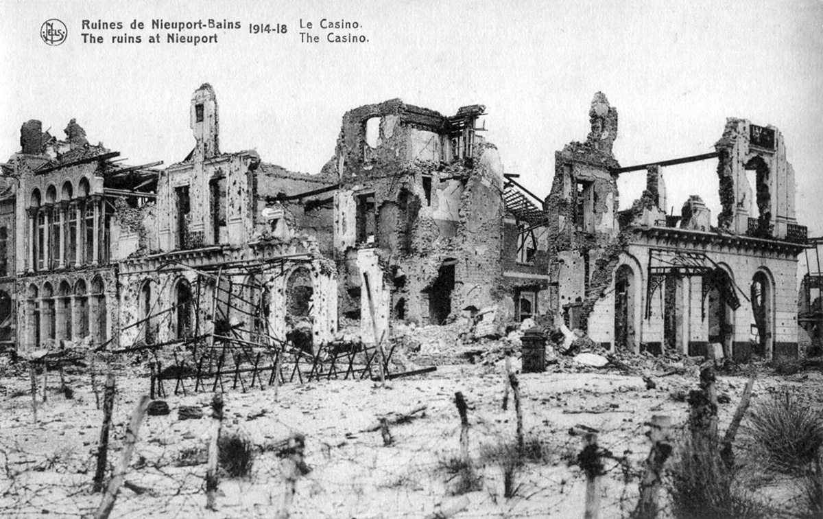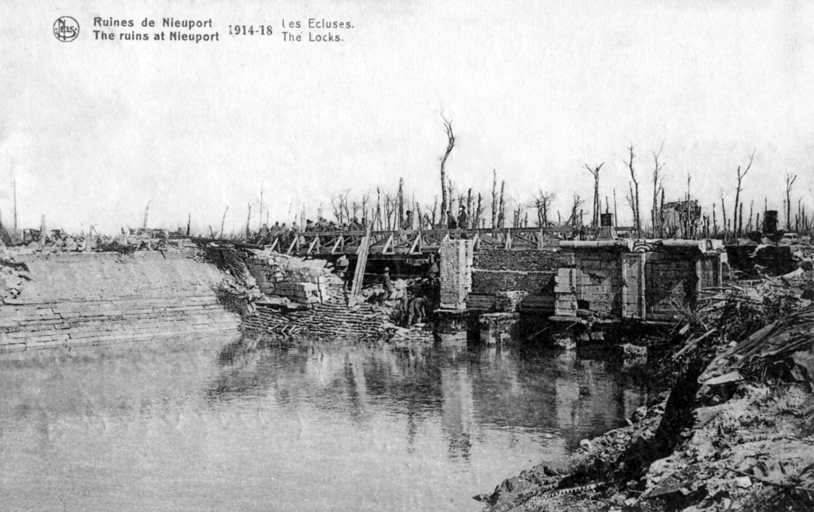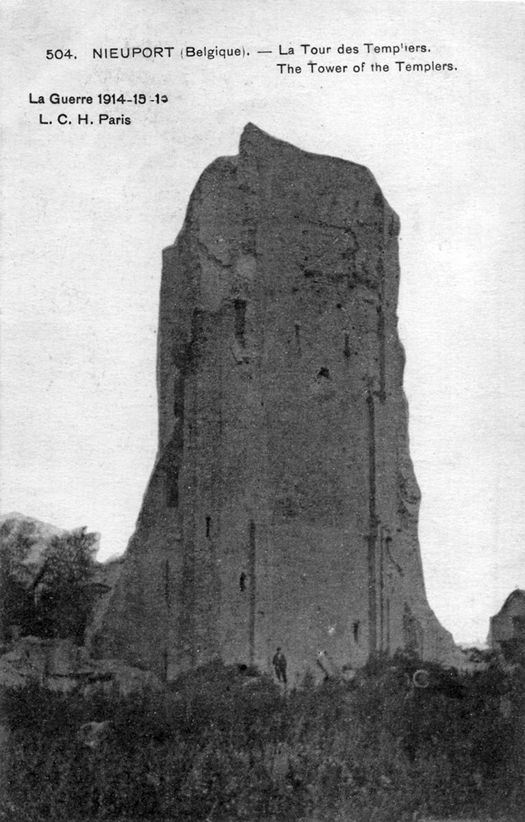 "Pendant la bataille de l'Yser, la ville fut entièrement détruite par les bombardements ; le peintre officiel des armées françaises, François Flameng, réalisa de nombreux croquis et dessins des combats qui eurent lieu ici pendant ce conflit, et qui parurent dans la revue L'Illustration. Certains bâtiments historiques furent reconstruits dans le style original après le conflit, comme la halle aux Grains et l'église Notre-Dame.