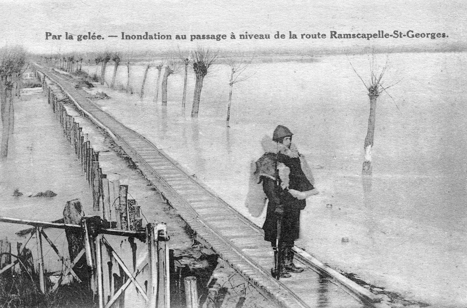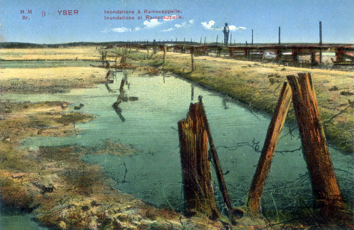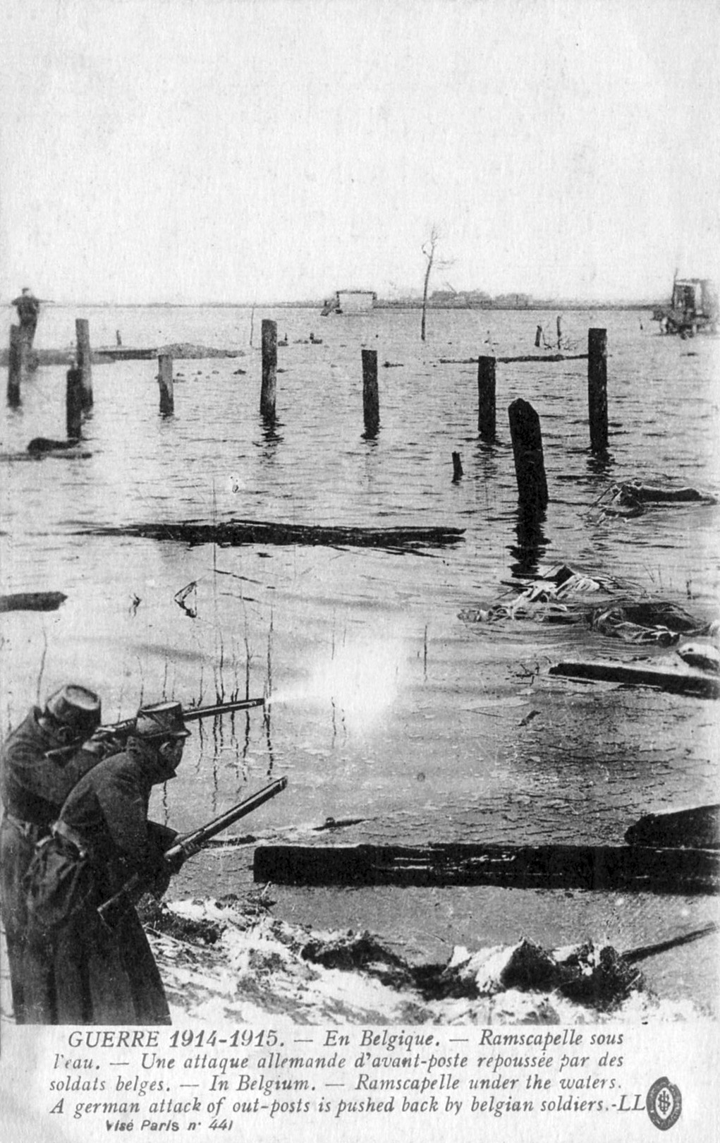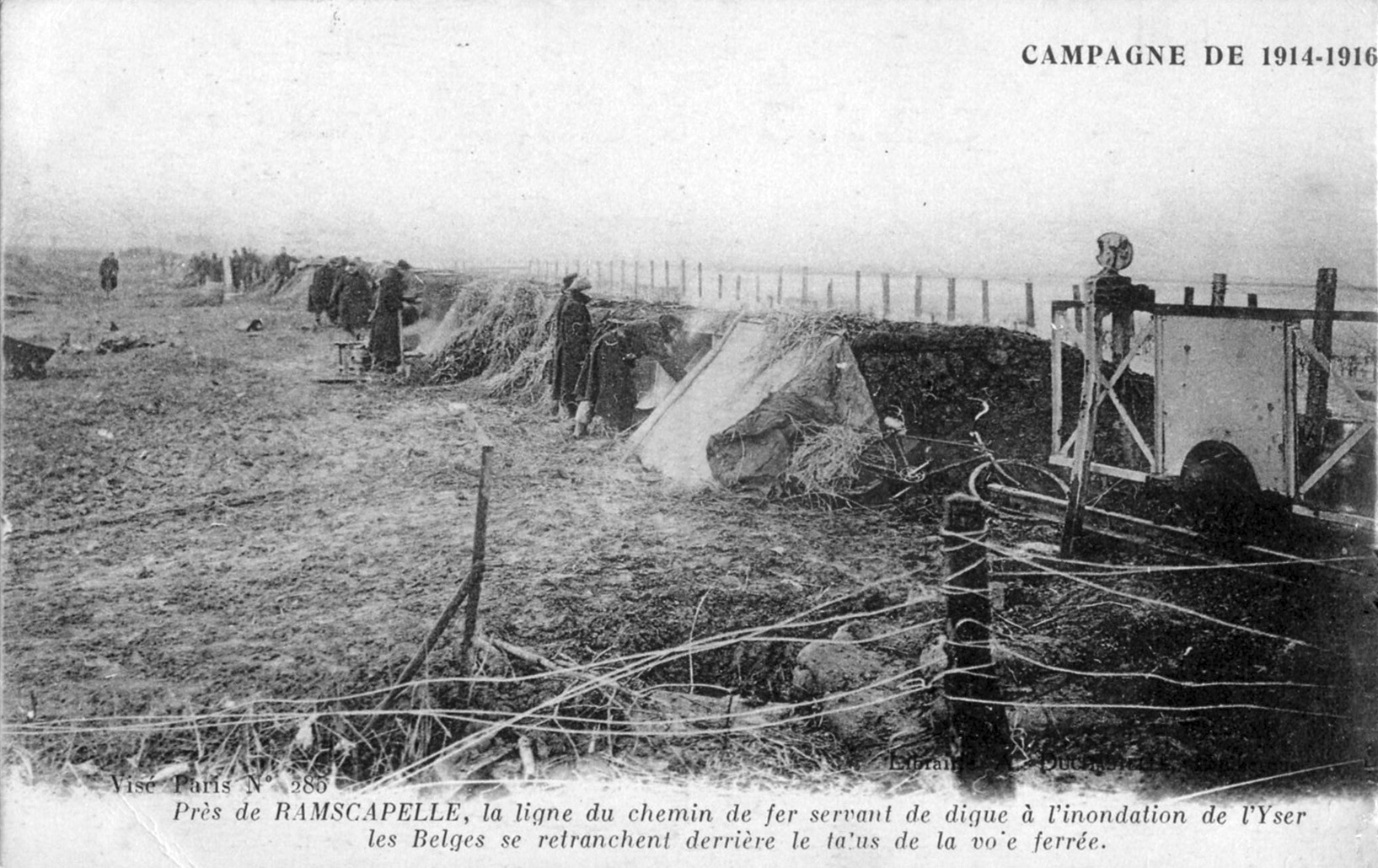 Quand Le roi Albert Ier ordonne l'ouverture des écluses des polders flamands afin de noyer le terrain, la progression des troupes allemandes dans ce qui lui reste de son royaume est gênée. Les Belges peuvent faire face à l'envahisseur dès l'inondation de la plaine entre le talus du chemin de fer et l’Yser.