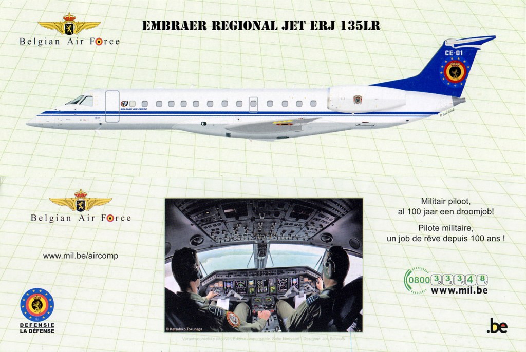 Avions de transport régional biréacteur construits par la société brésilienne Embraer. Notre Force aérienne acquiert 2 exemplaires de chaque modèle, mis en service de juin 2001 à décembre 2020, au sein du 21° sqn du 15° Wing Tpt.