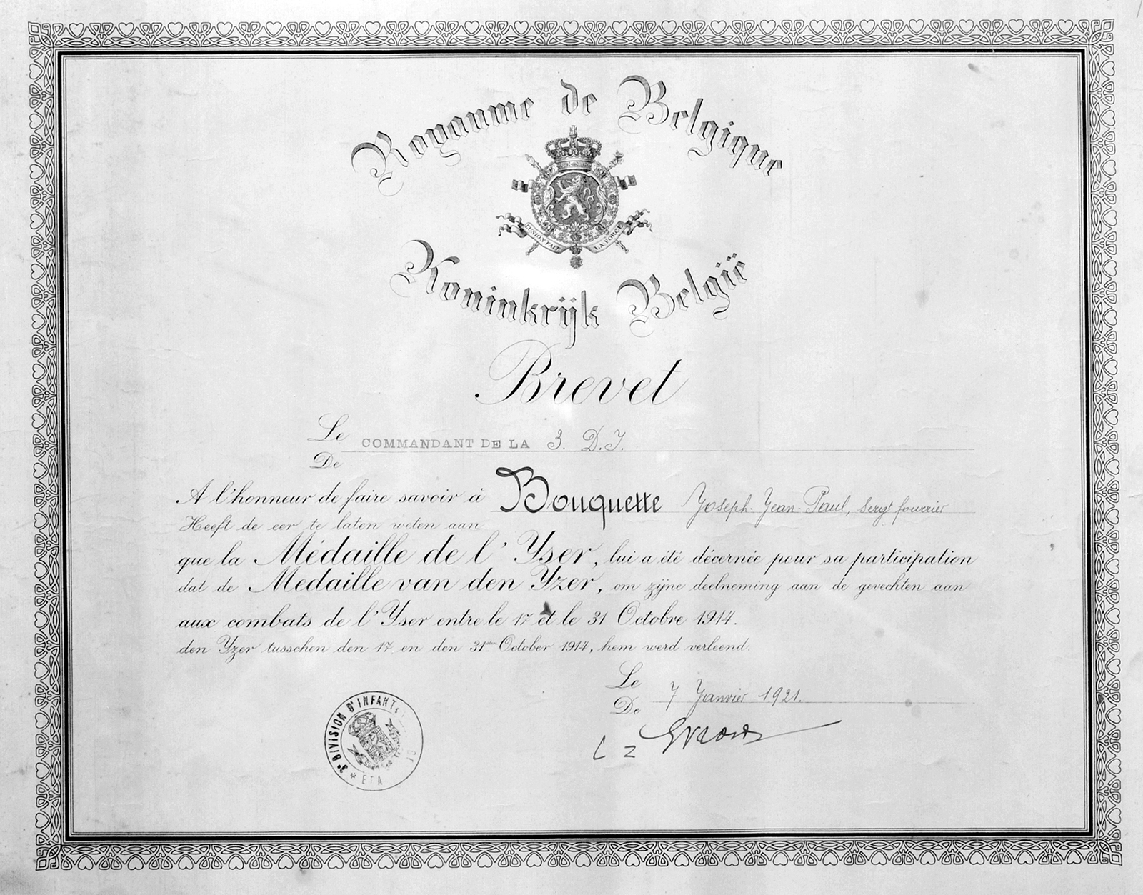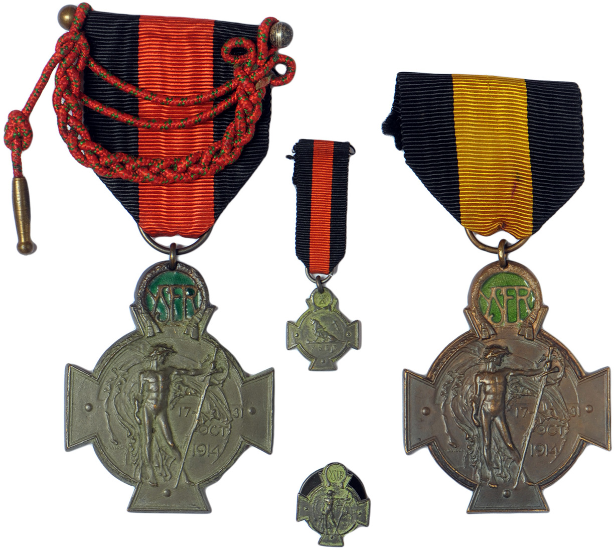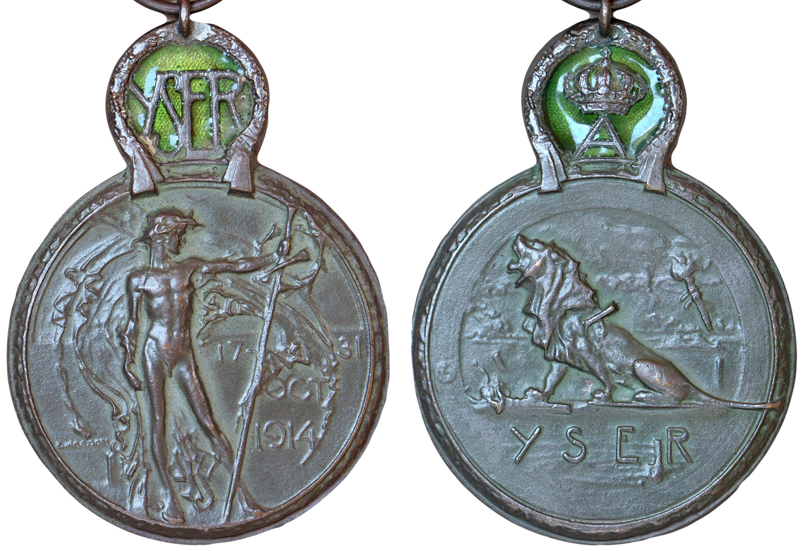 Médaille créée par arrêté royal du 18 octobre 1918. Elle est décernée aux membres des Forces armées belges et étrangères qui ont combattu sur l'Yser du 17 au 31 octobre 1914 et qui se sont montrés dignes de cette distinction. Elle pouvait aussi être décernée à titre posthume. Pas d'attributs mentionnés. A partir de 1934, la Croix de l'Yser remplace la médaille. Il existe un ruban non-officiel, noir et jaune, qui identifie le récipiendaire comme Flamand.