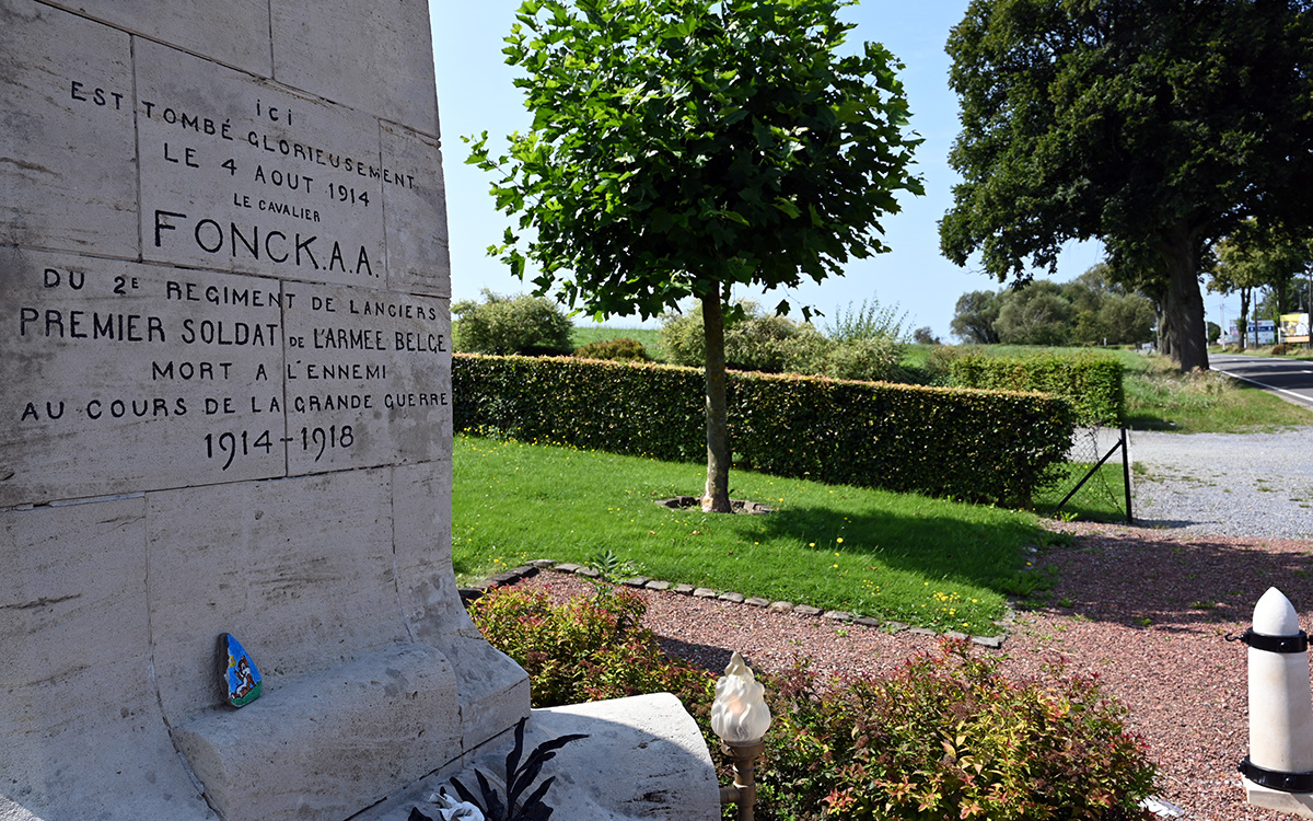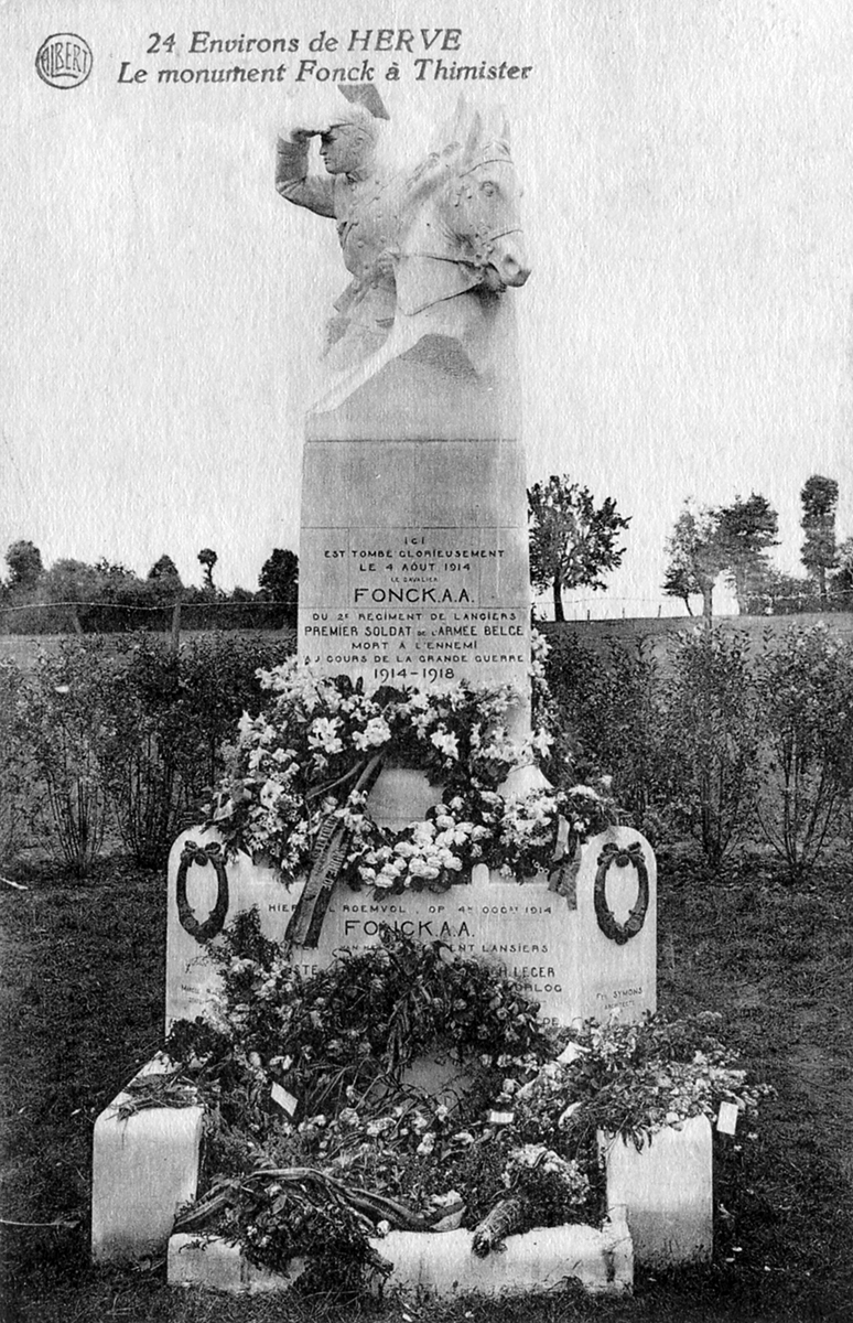 Décédé à Thimister le 4 août 1914. Le cavalier Antoine Fonck est le premier soldat belge victime de la première guerre mondiale.