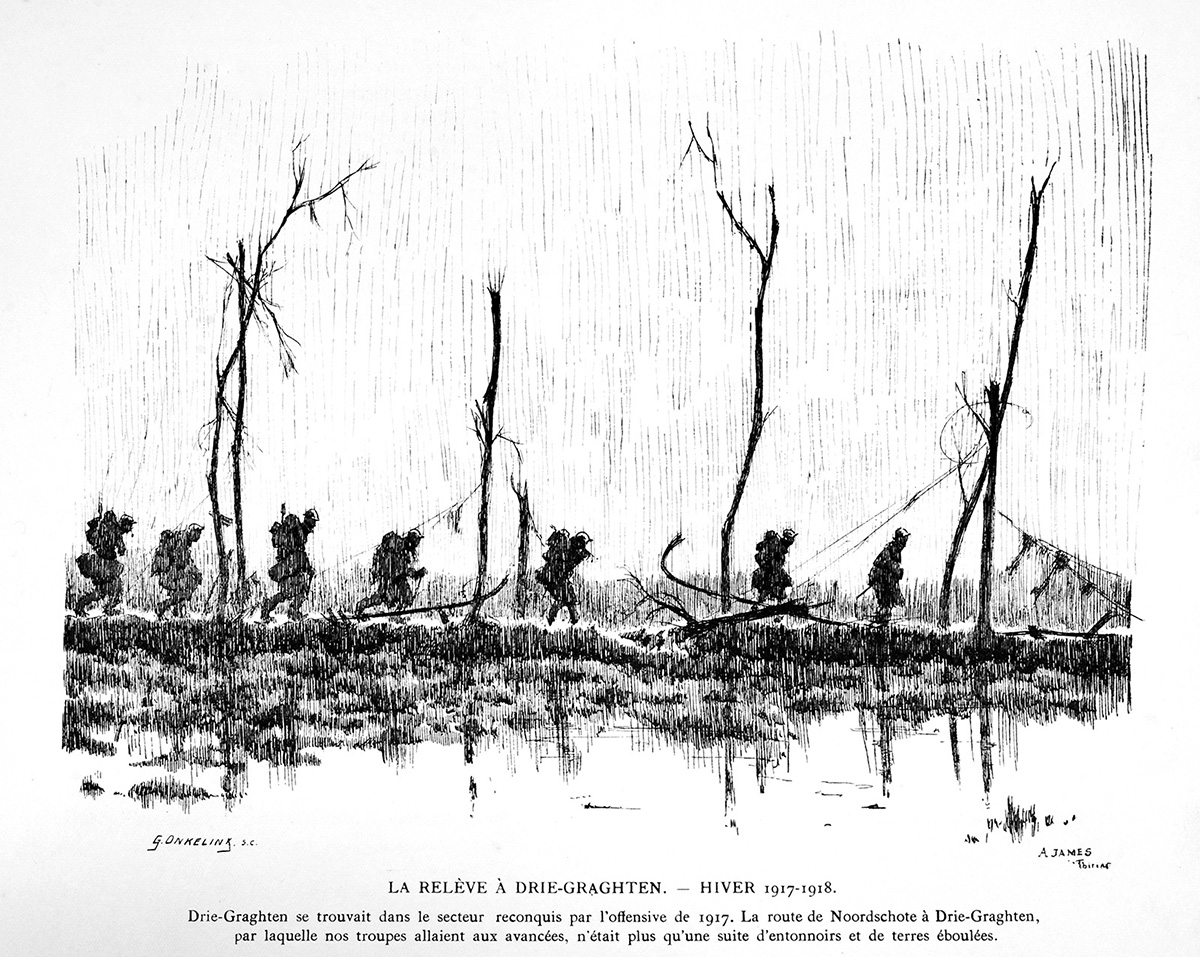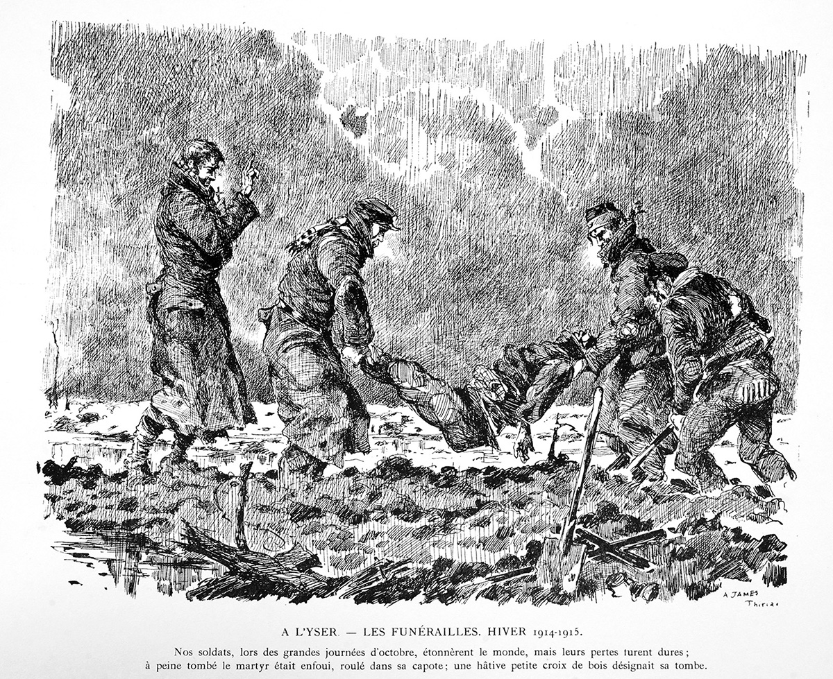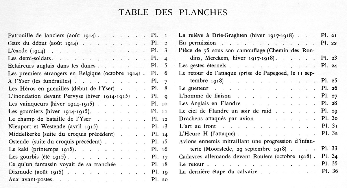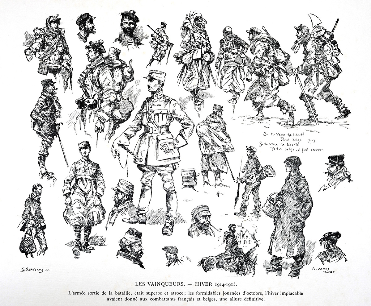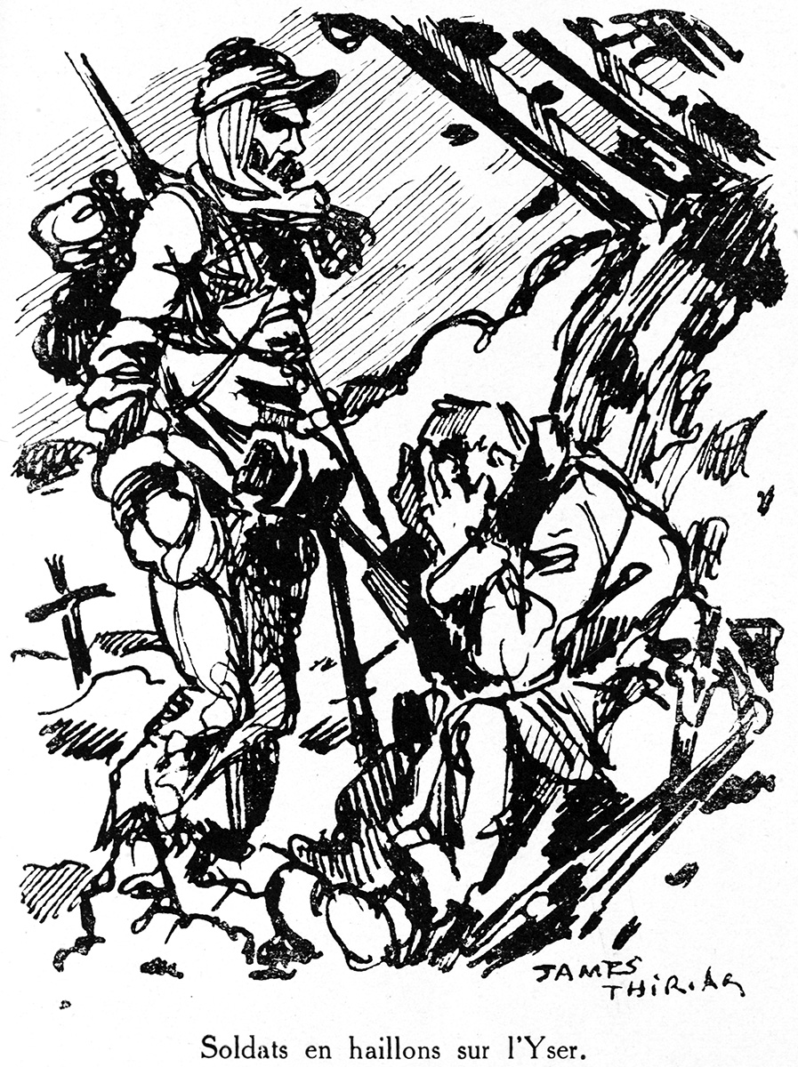 Livre "Gloire et Misère au Front de Flandres", texte et dessins par James Thiriar, G. Van Oest & Cie, éditeurs, 1920.