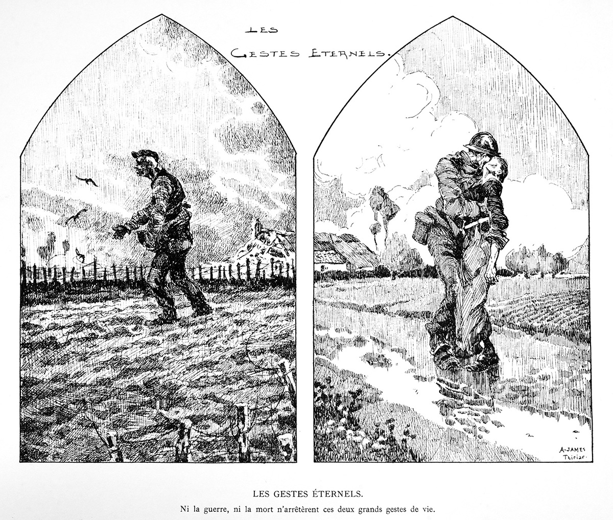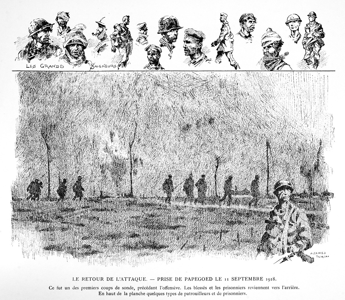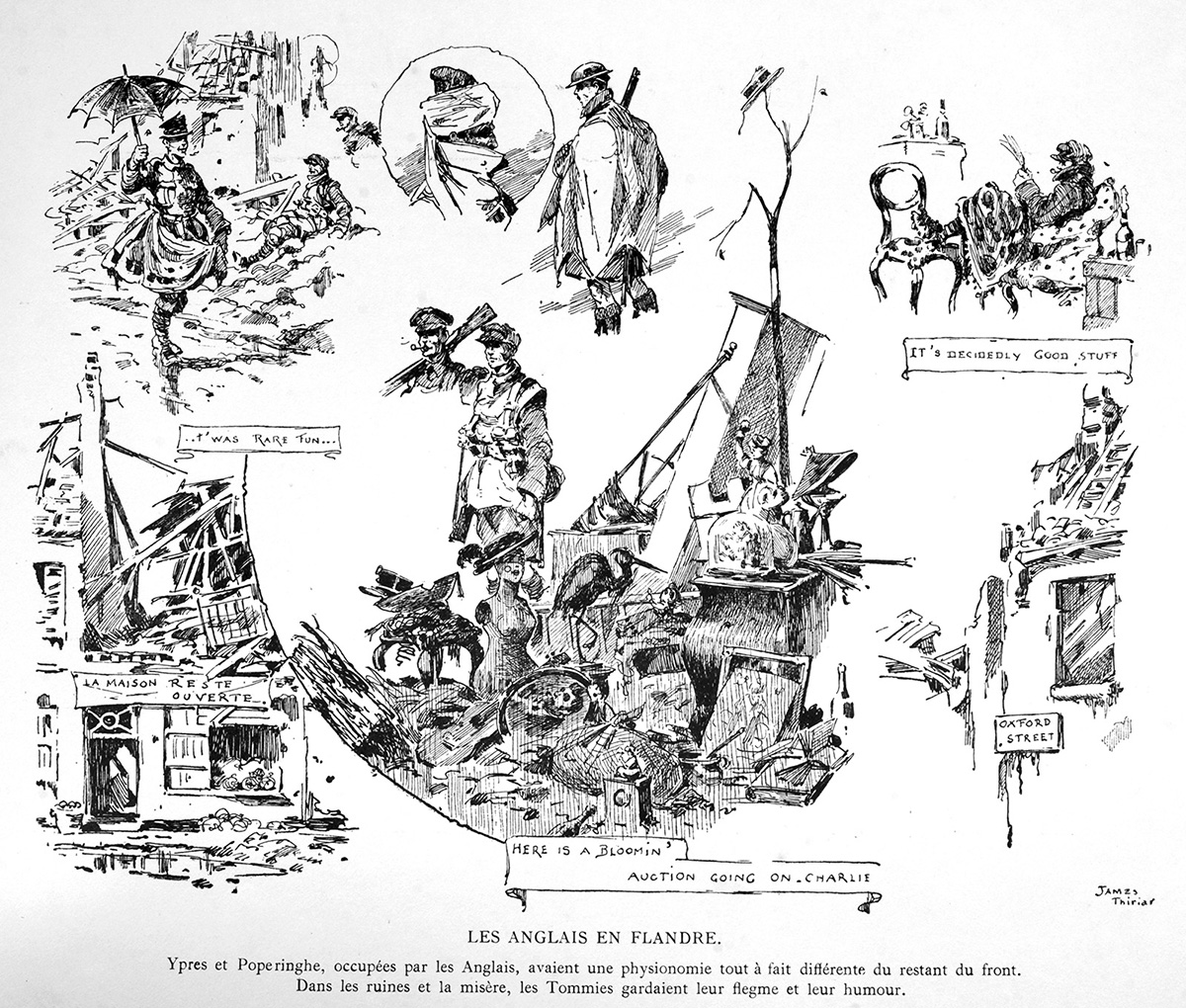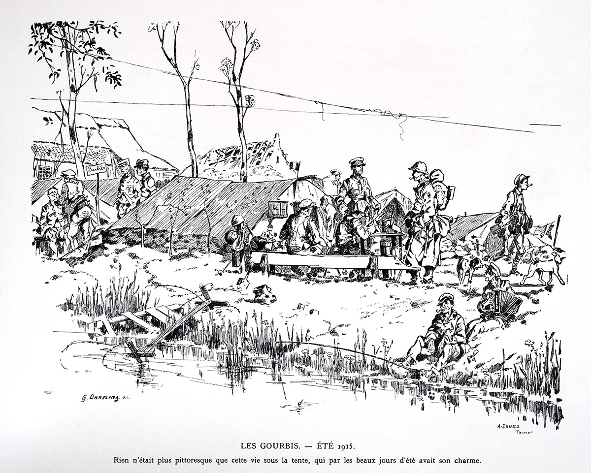Livre "Gloire et Misère au Front de Flandres", texte et dessins par James Thiriar, G. Van Oest & Cie, éditeurs, 1920.