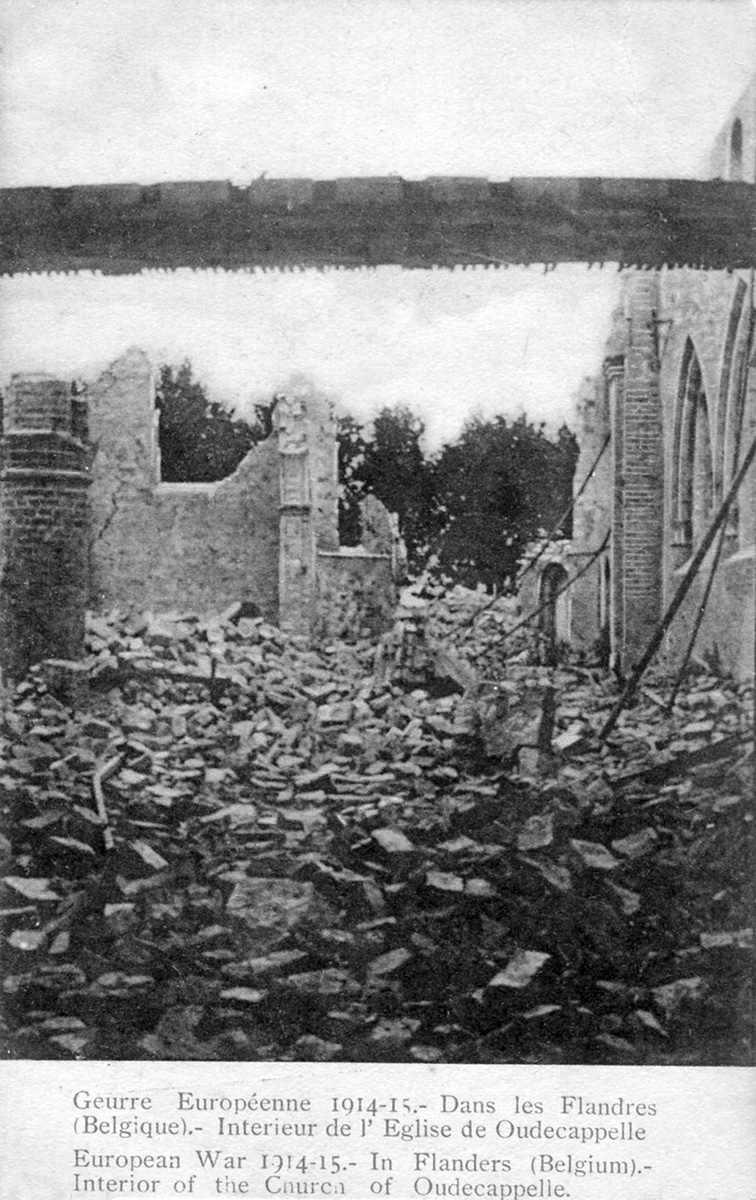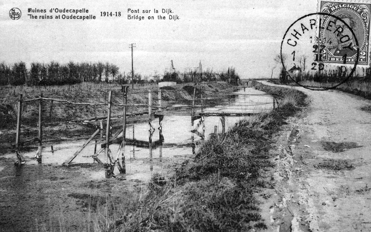 Section de la ville de Diksmuide. Dès octobre 1914, Oudekapelle se trouve en première ligne, et accueille notamment des réfugiés de la ville de Dixmude. Le village, évacué est complètement détruit en 1917 et sera reconstruit dans les années 1920.
