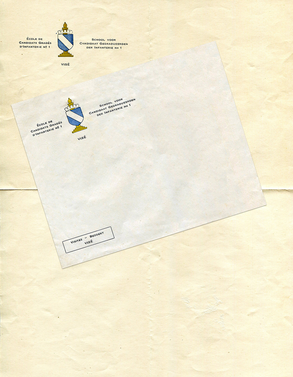 Papier à lettre et enveloppe à en-tête de l’Ecole de candidats Gradés d’Infanterie.