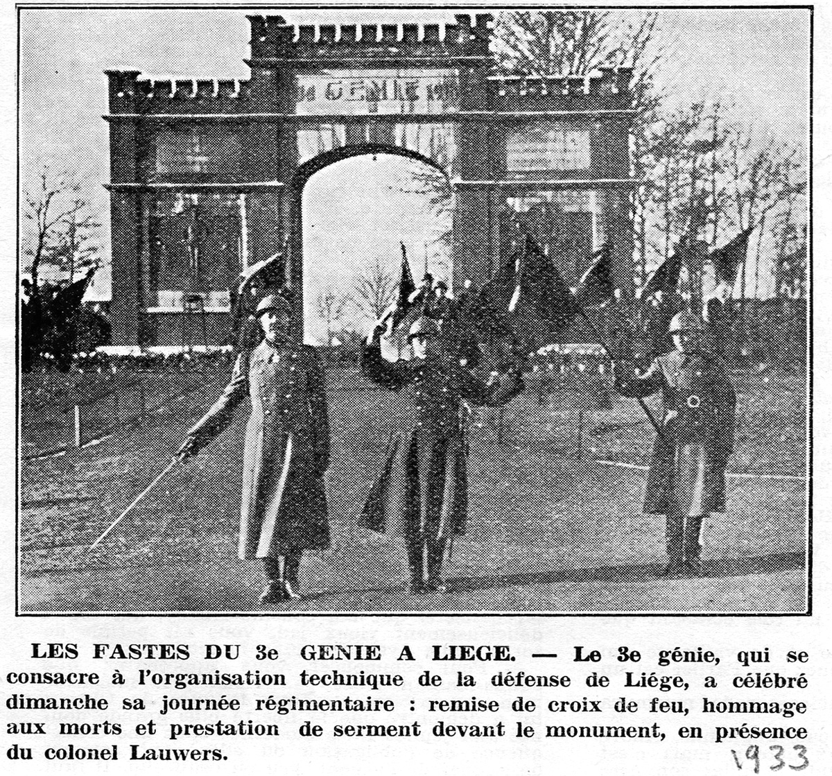 L’année 1913 voit la création d’un bataillon de Génie affecté à la 3° Division d’Armée qui défend la Position Fortifiée de Liège (PFL). Ce bataillon participe à la défense de la PFL et ensuite à l’entièreté du premier conflit mondial.