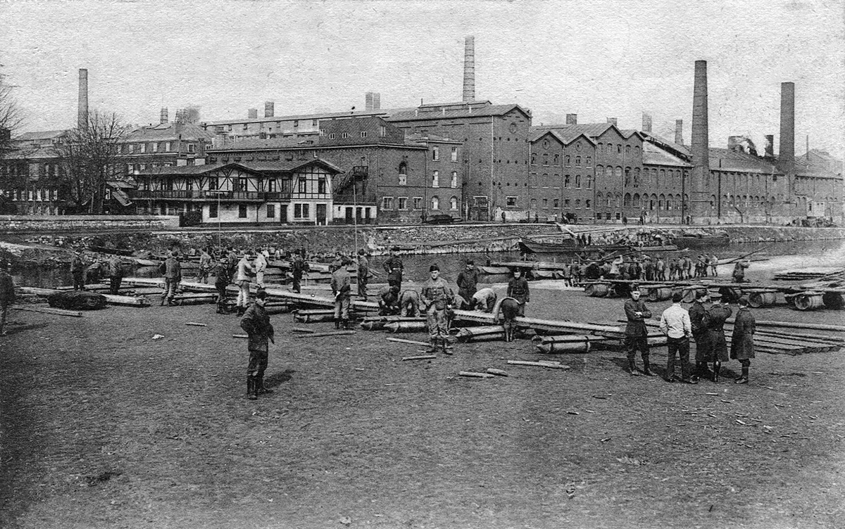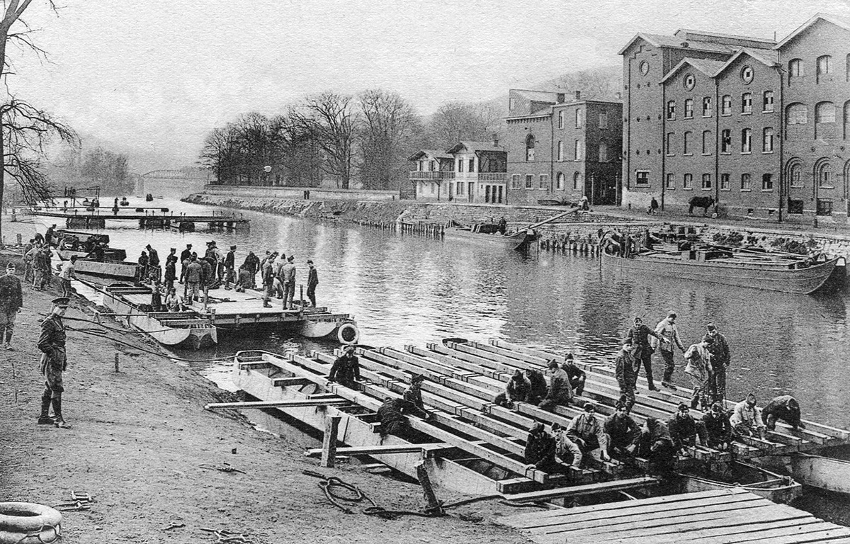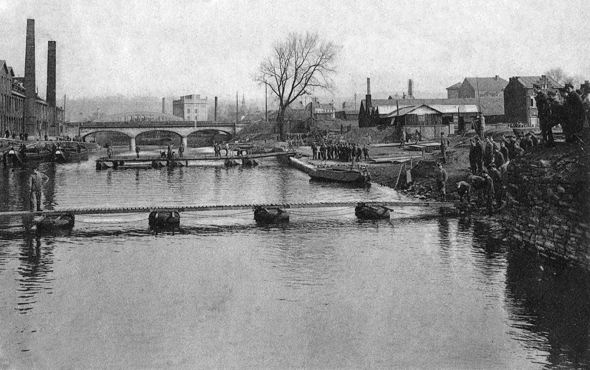 Régiment du Génie de la 3° Division d'Armée. A noter les photos prises lors d'un exercice de pontage sur l'Ourthe à Chênée.