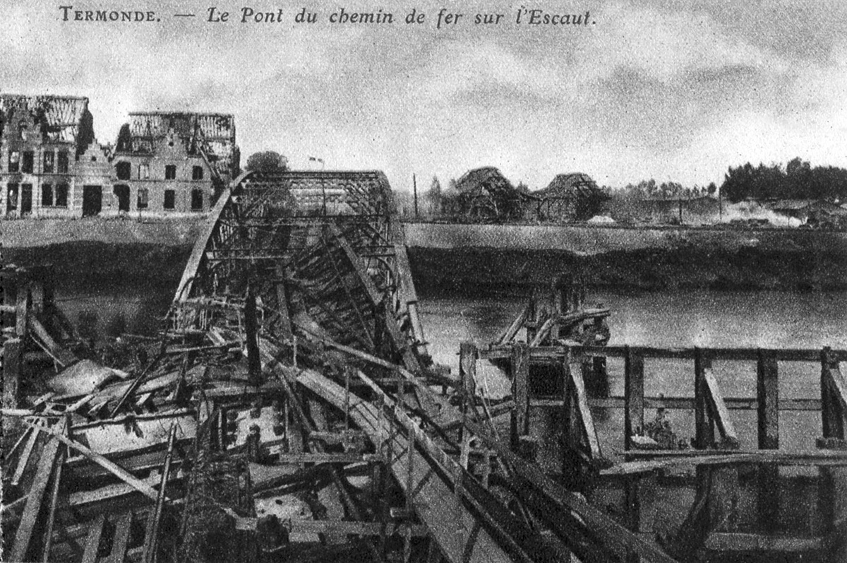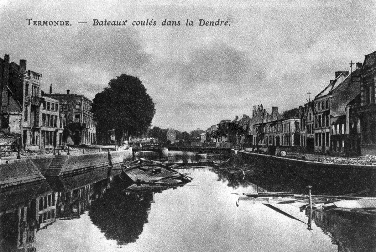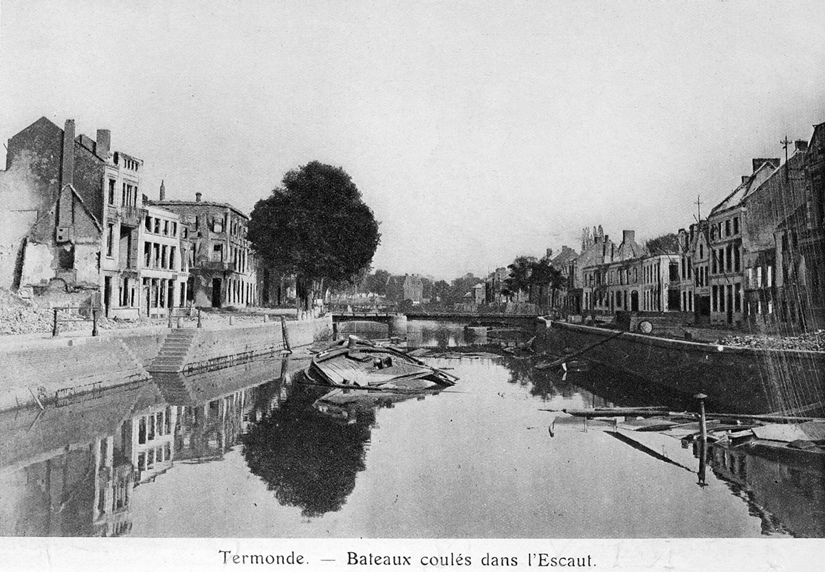 Dégâts causés à la ville de Termonde, par les bombardements allemands