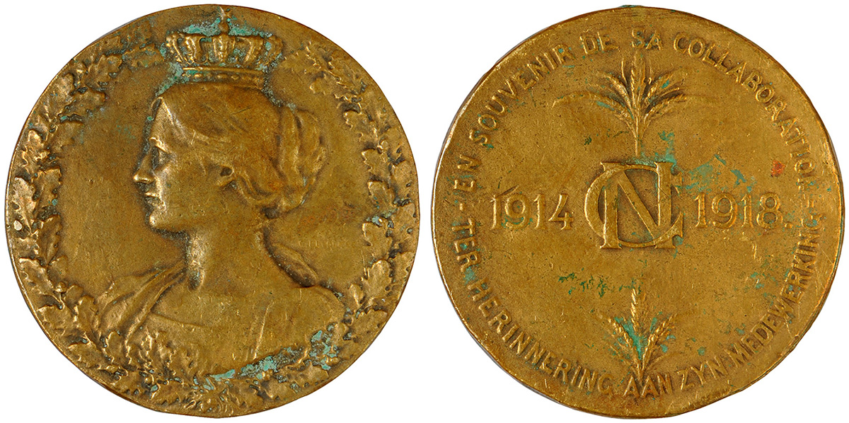 Création en mai 1919. Surnommée la Médaille du Haricot” en rapport avec ce féculent abondamment distribué aux civils pendant la guerre, elle est un témoignage de reconnaissance envers ceux qui se mirent au service du Comité pour ravitailler la population belge.