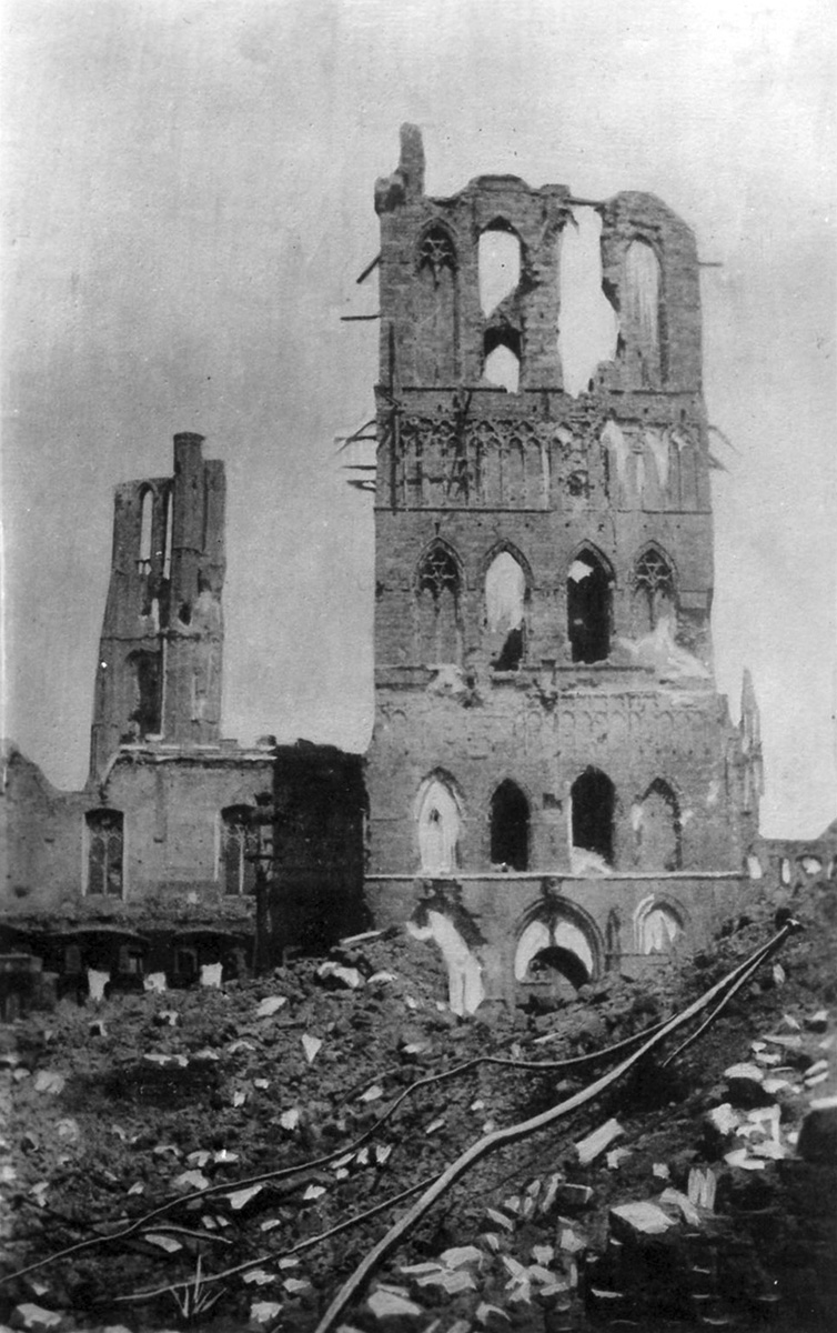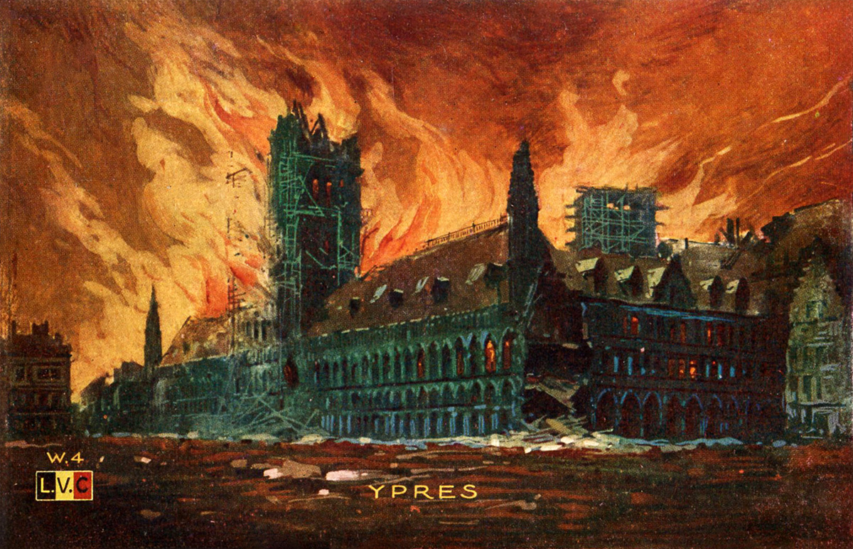 Les halles aux Draps pendant la première guerre, peintes par Alfred Bastien