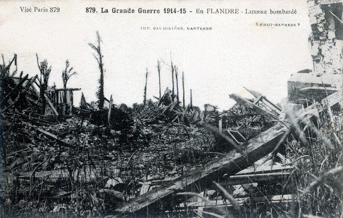 Le village de Lizerne détruit - © Edmond Famechon/ECPAD/Défense. Cette photo est issue d'un reportage intitulé : "Le front belge en septembre 1917".